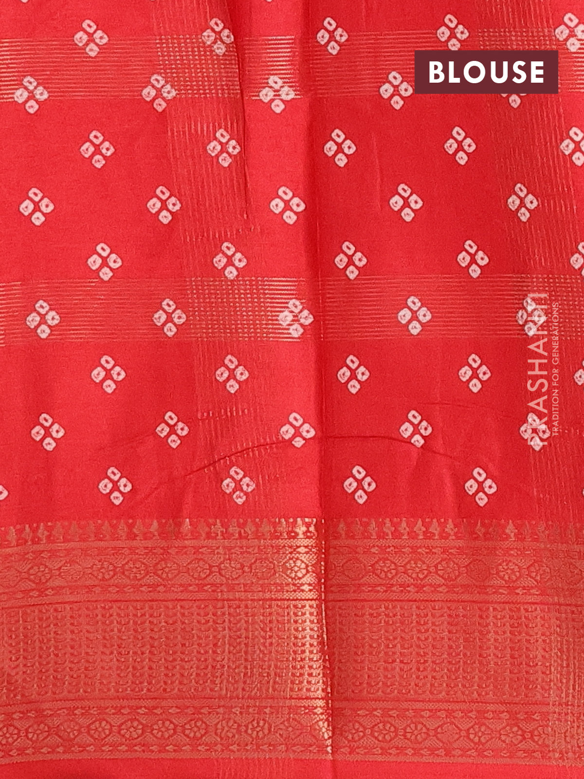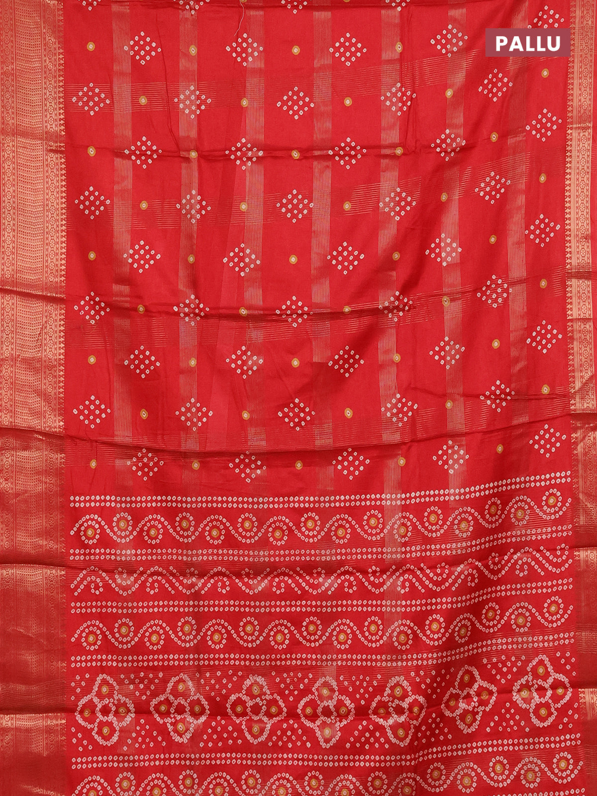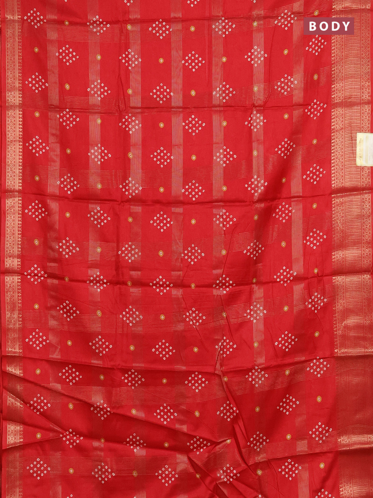 Semi dola saree red with allover zari checks & bandhani prints and zari woven border