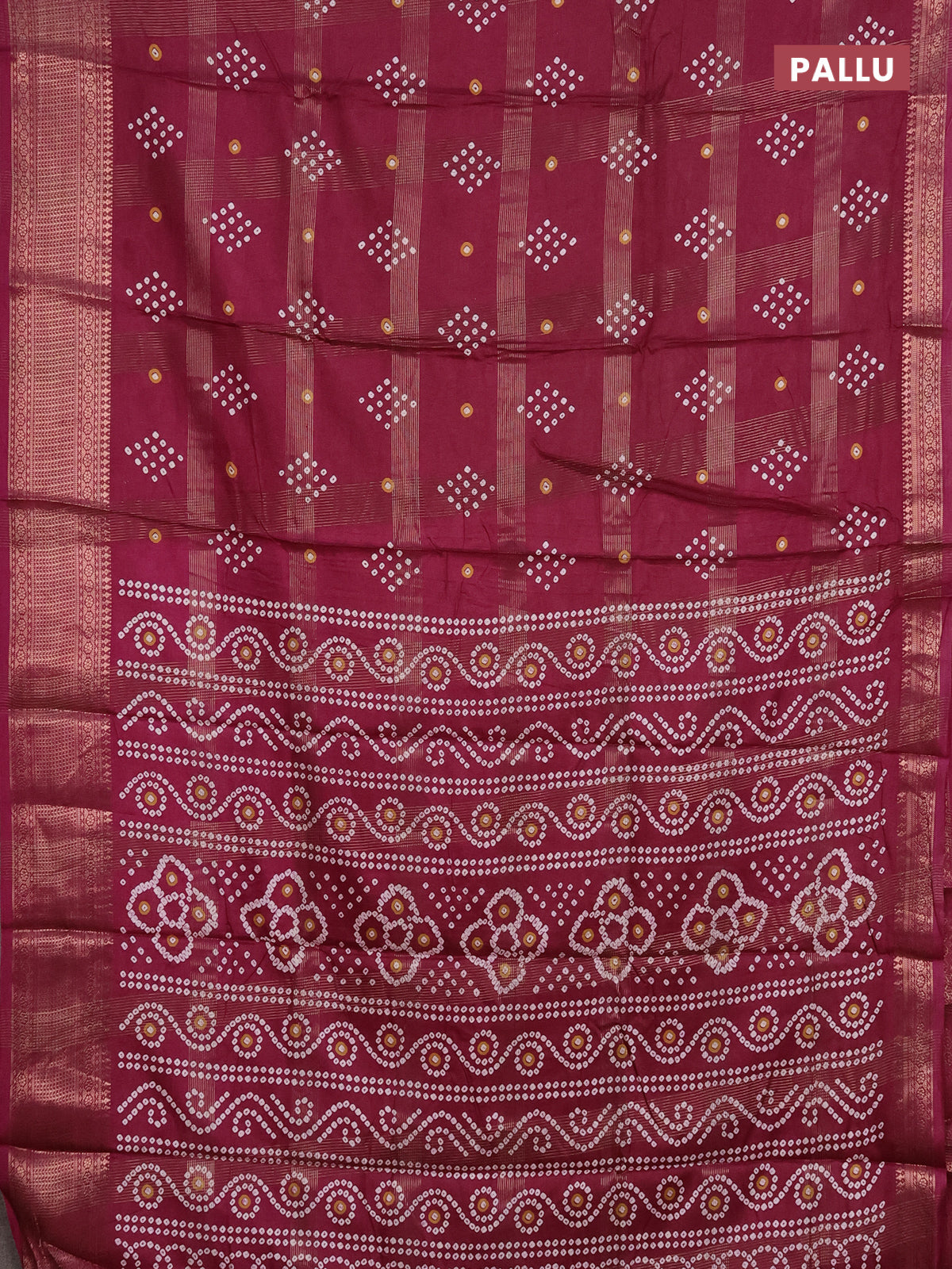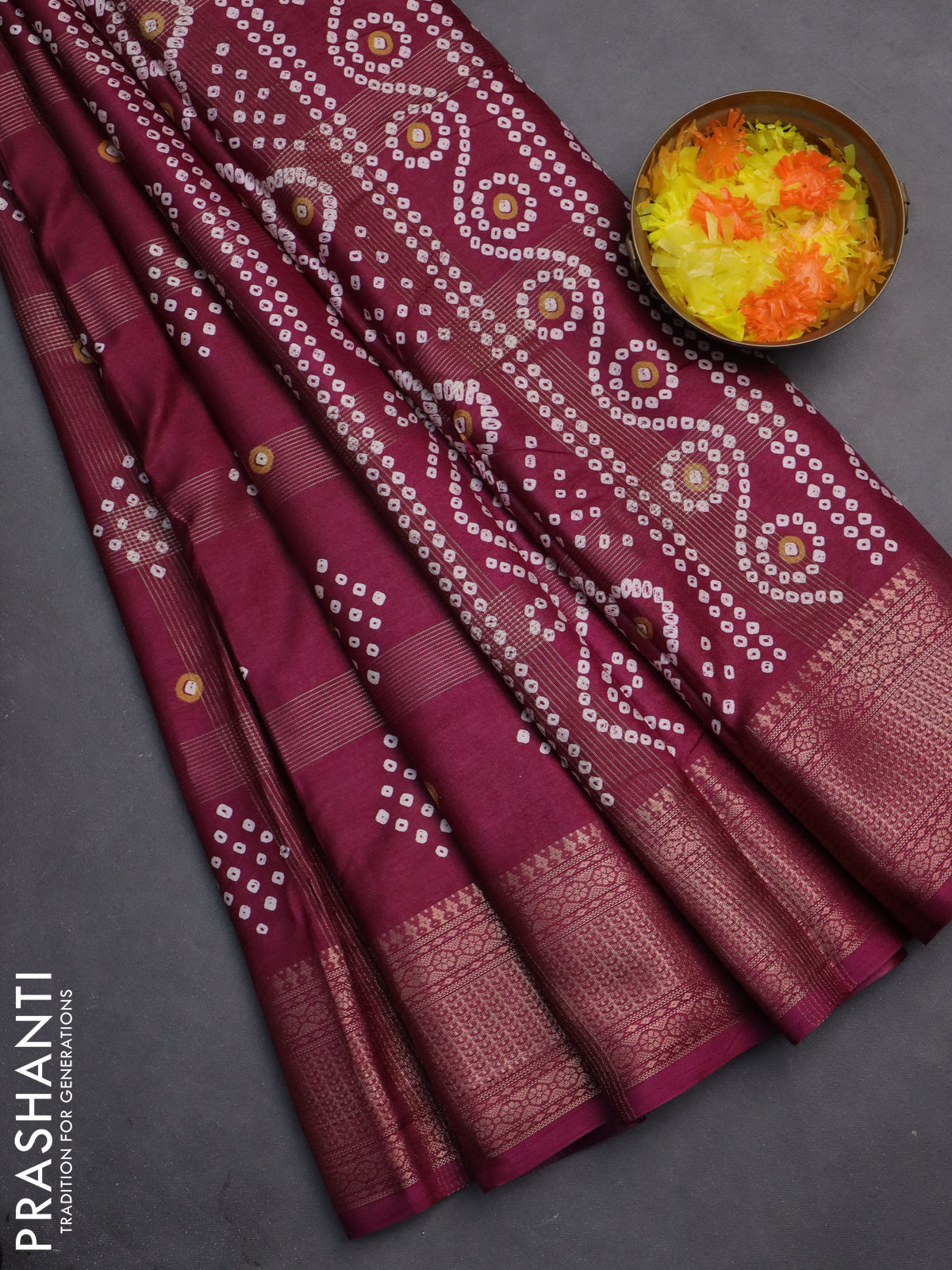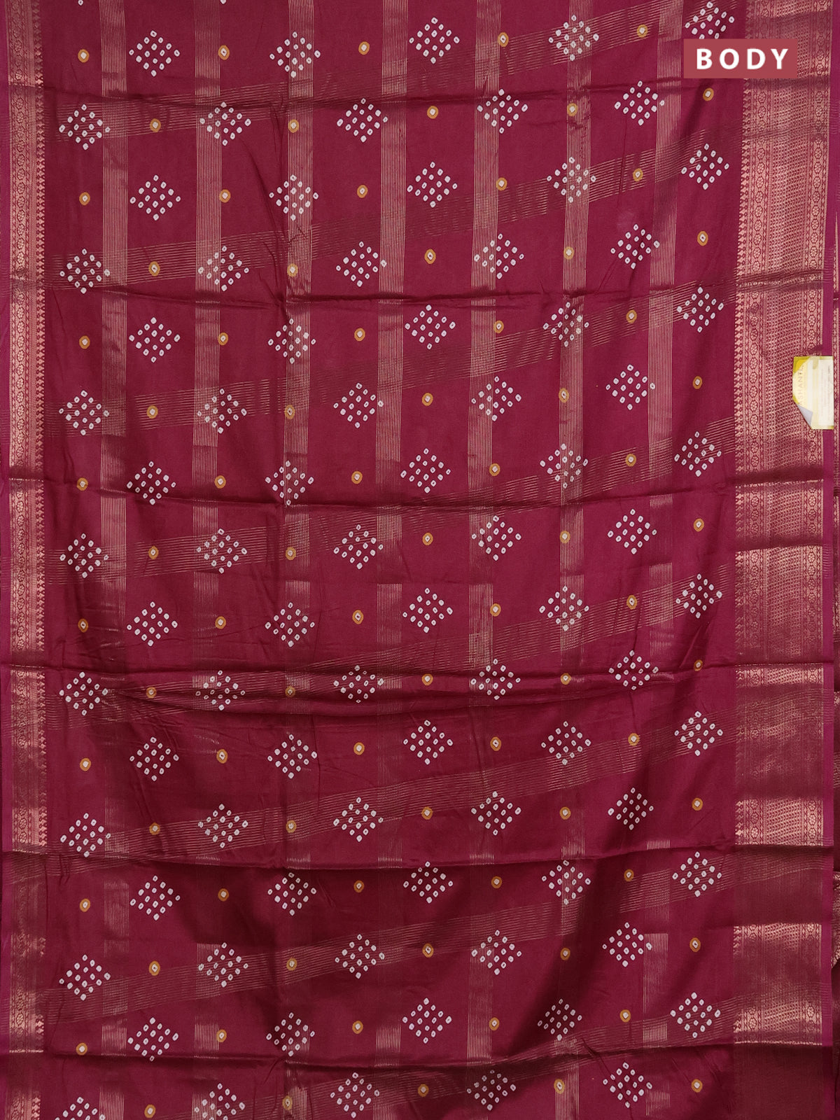 Semi dola saree wine shade with allover zari checks & bandhani prints and zari woven border