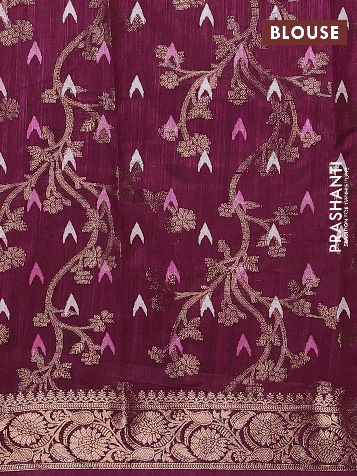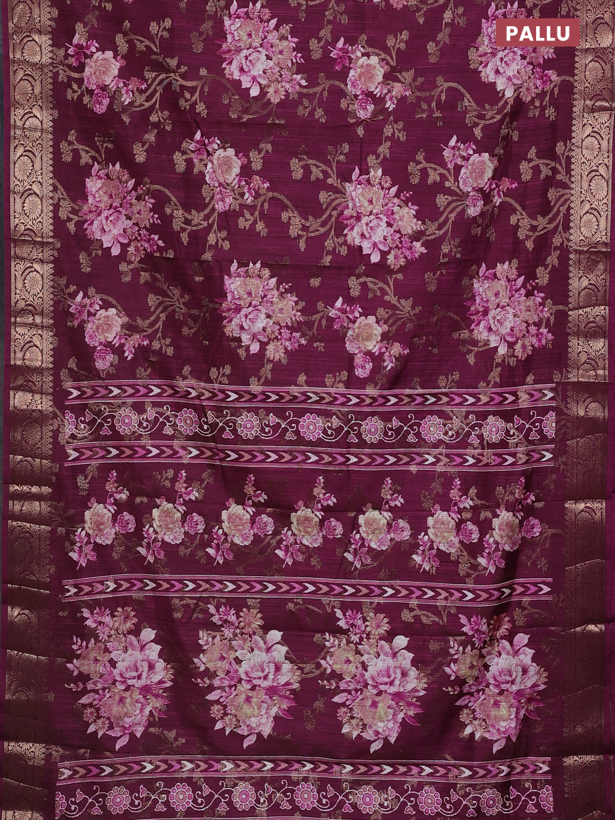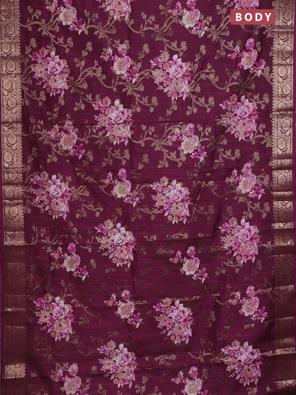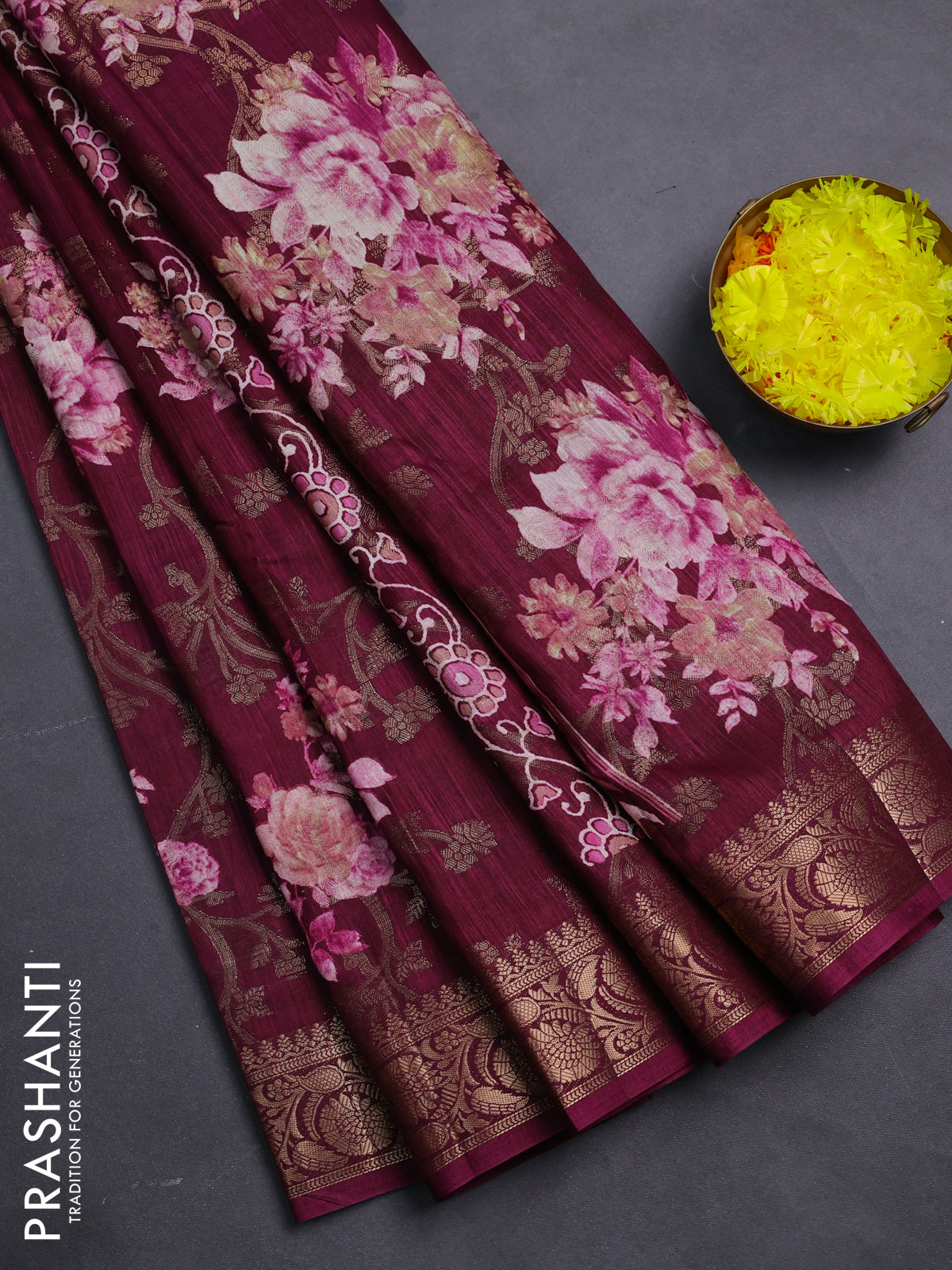 Semi dola saree wine shade with floral prints & zari weaves and zari woven border