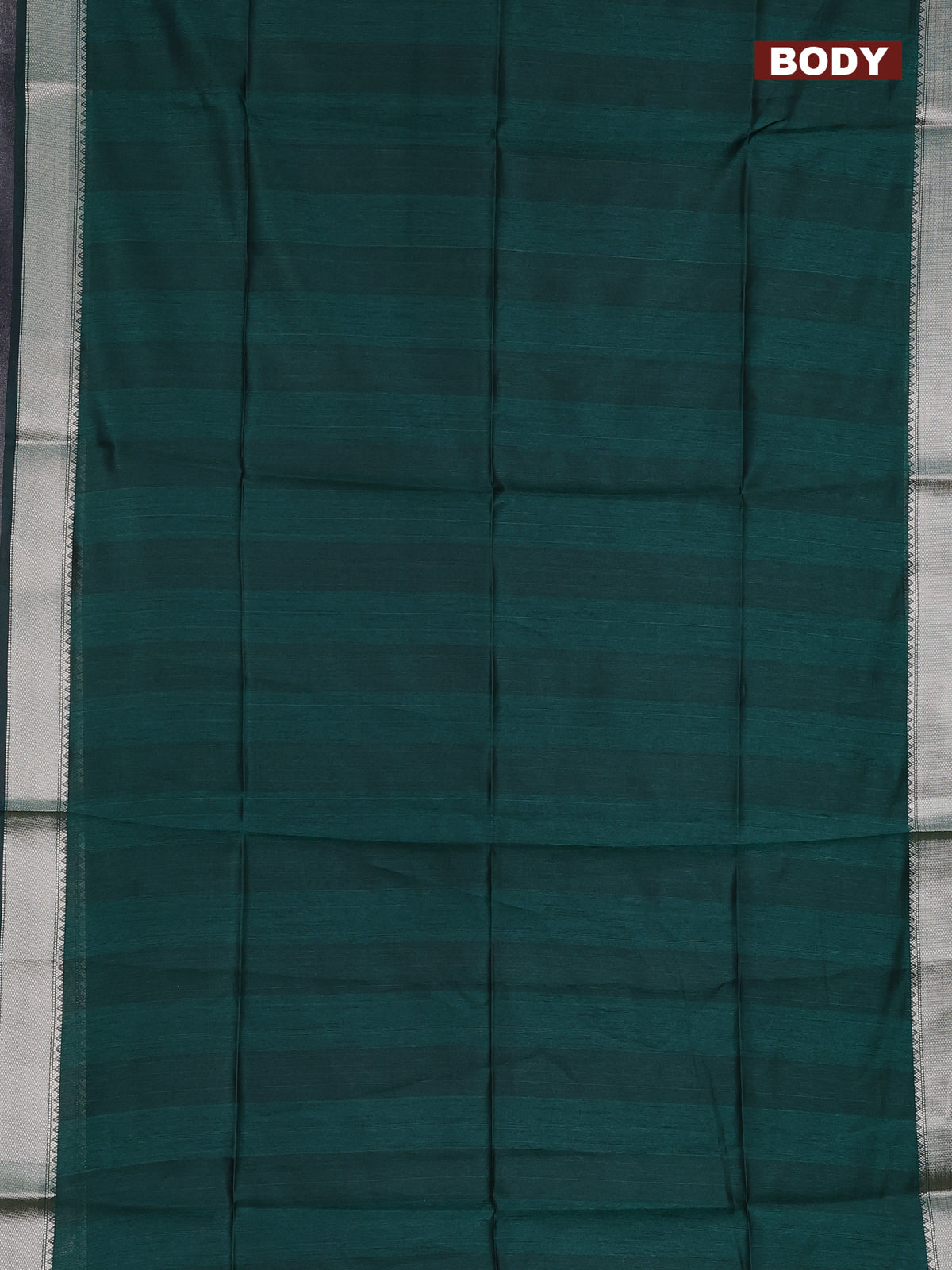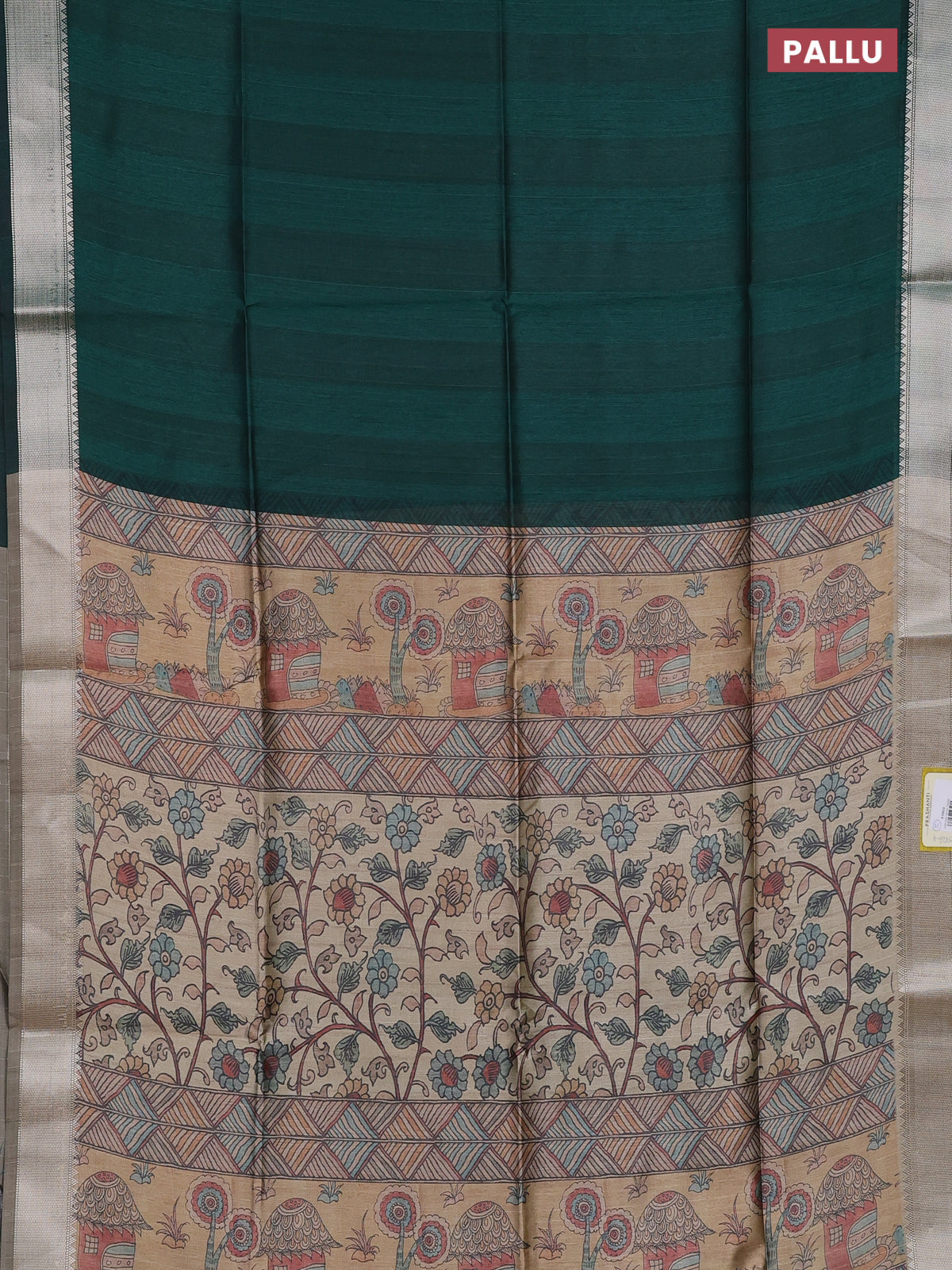 Semi dupion saree dark green and beige with plain body and kalamkari printed pallu