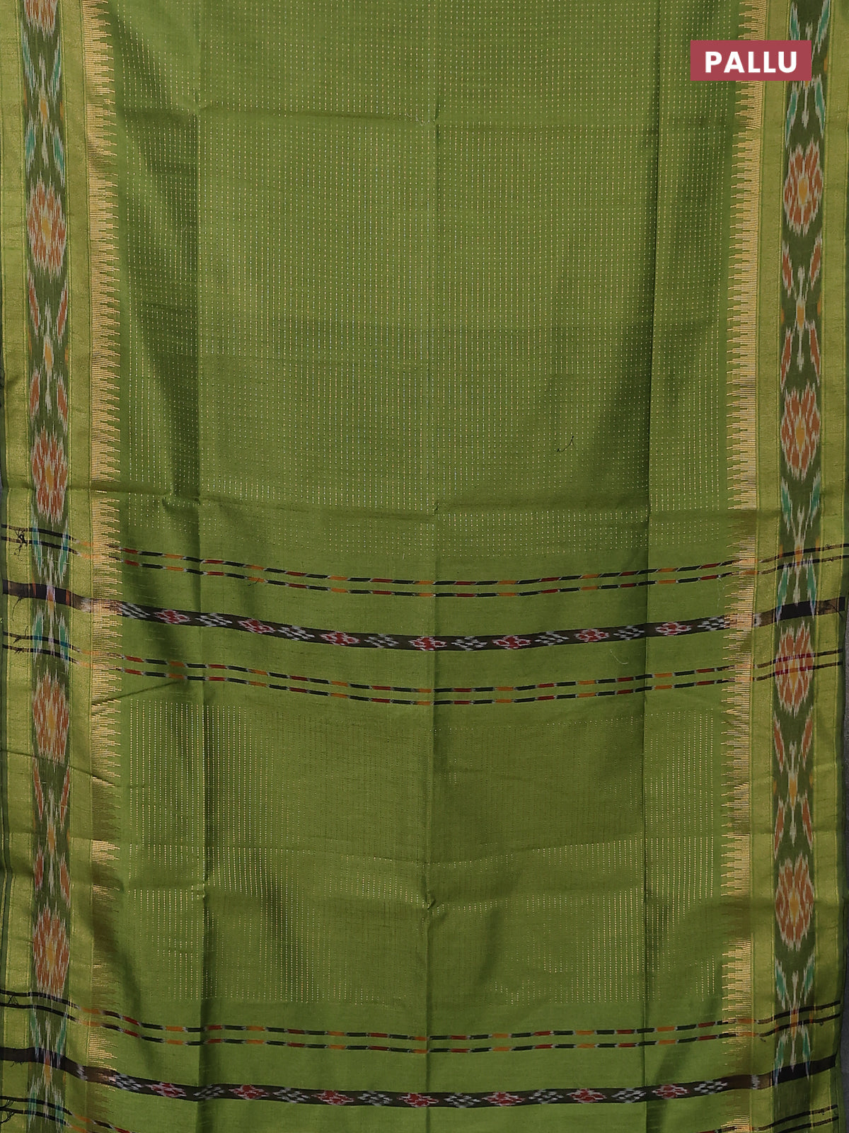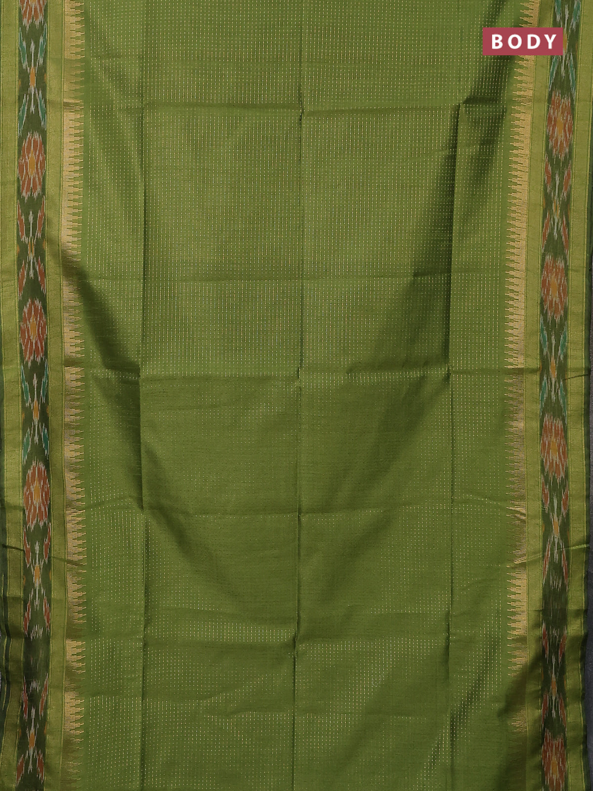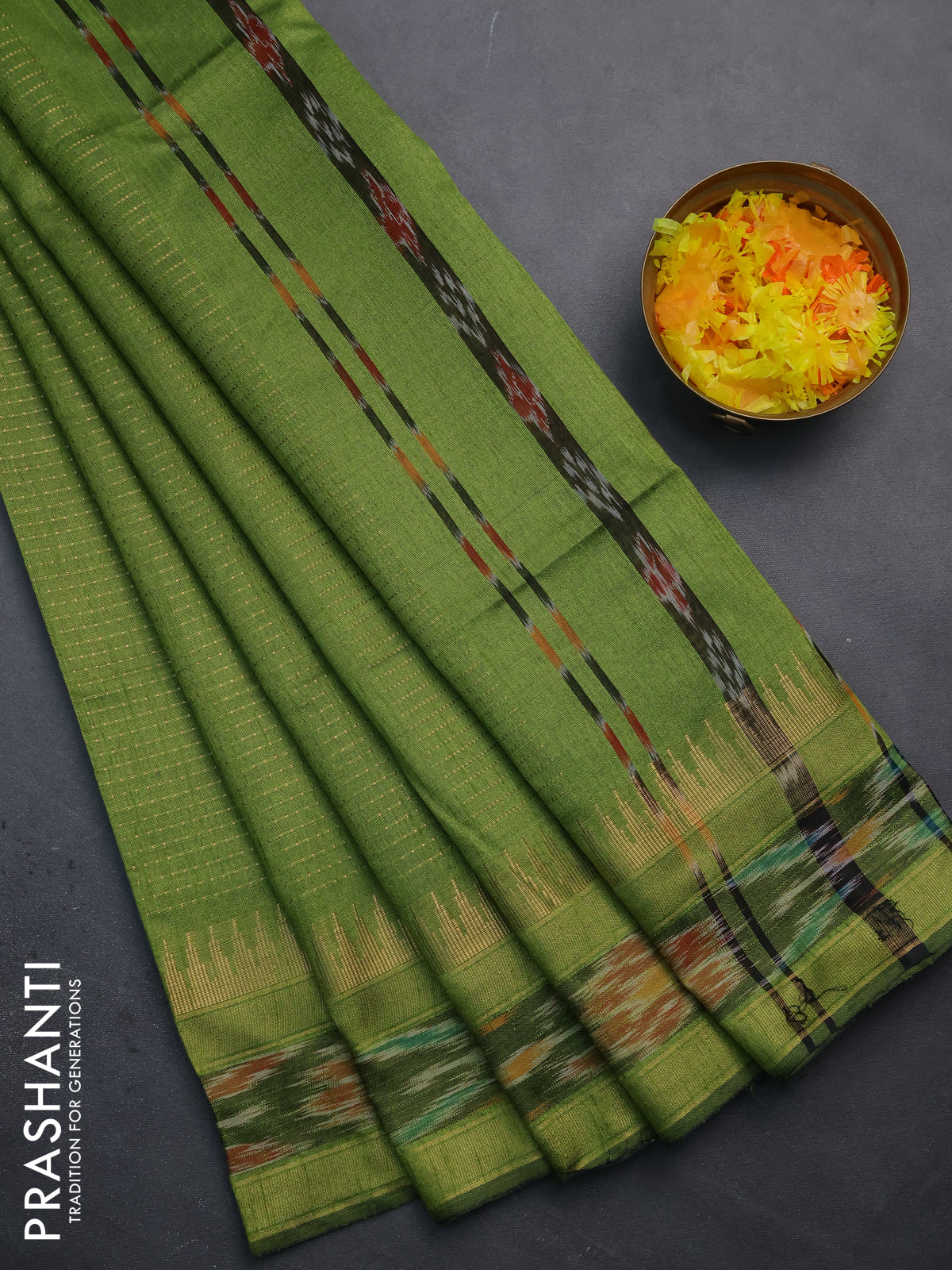 Semi dupion saree mehendi green with allover zari weaves and temple design zari woven ikat border