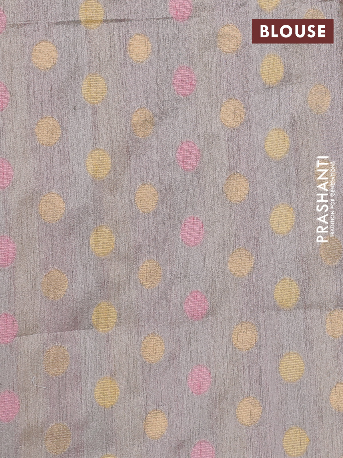 Semi dupion saree pastel grey and multi colour with allover kantha stitch work and zari woven border