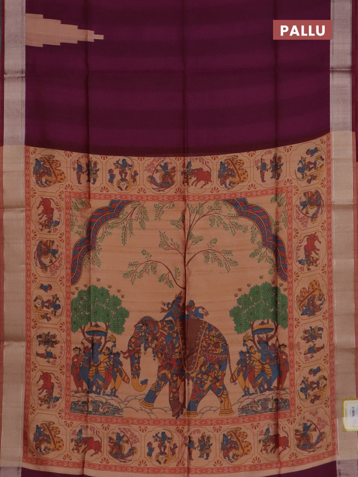 Semi dupion saree purple and dual shade of beige with plain body and kalamkari printed pallu