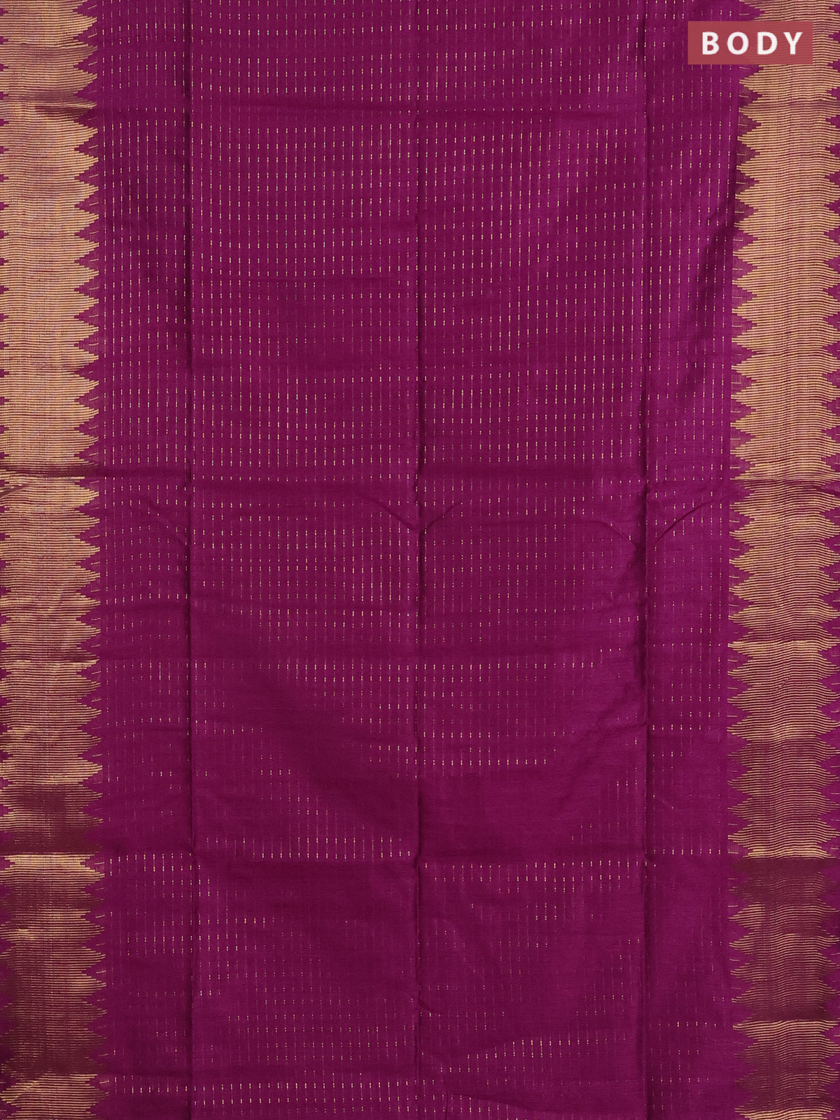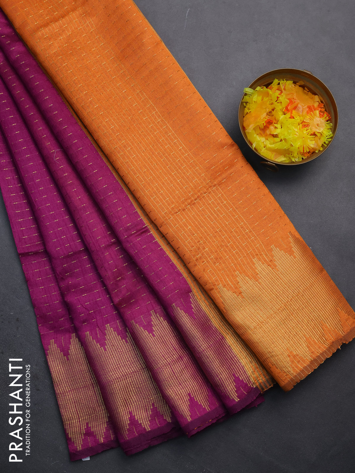 Semi dupion saree purple and orange with allover zari woven butta weaves and temple zari woven border