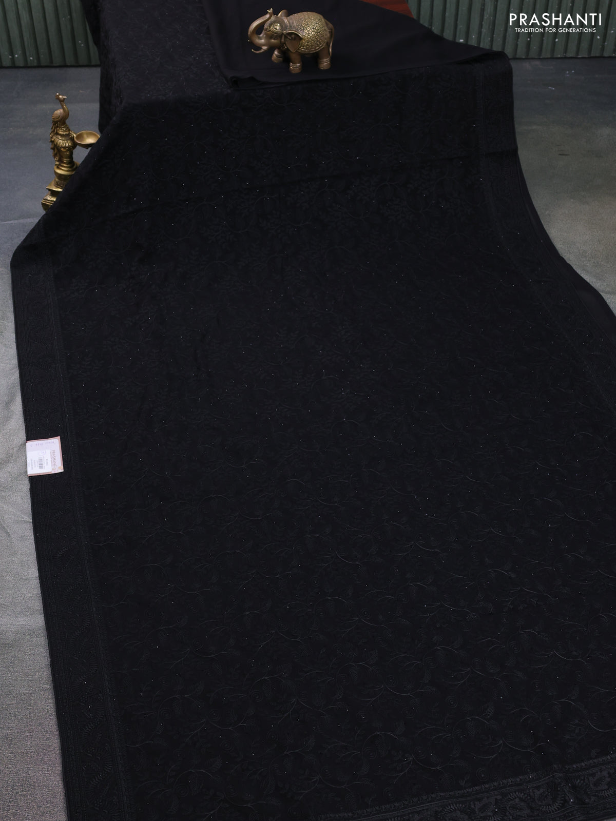 Semi georgette saree black with allover chikankari & stone work