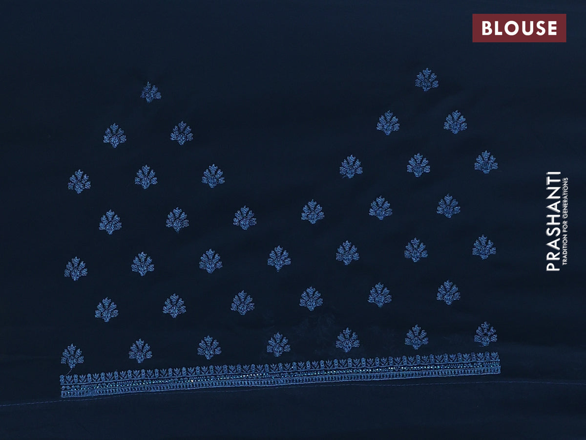 Semi georgette saree dark peacock blue with allover chikankari & stone work