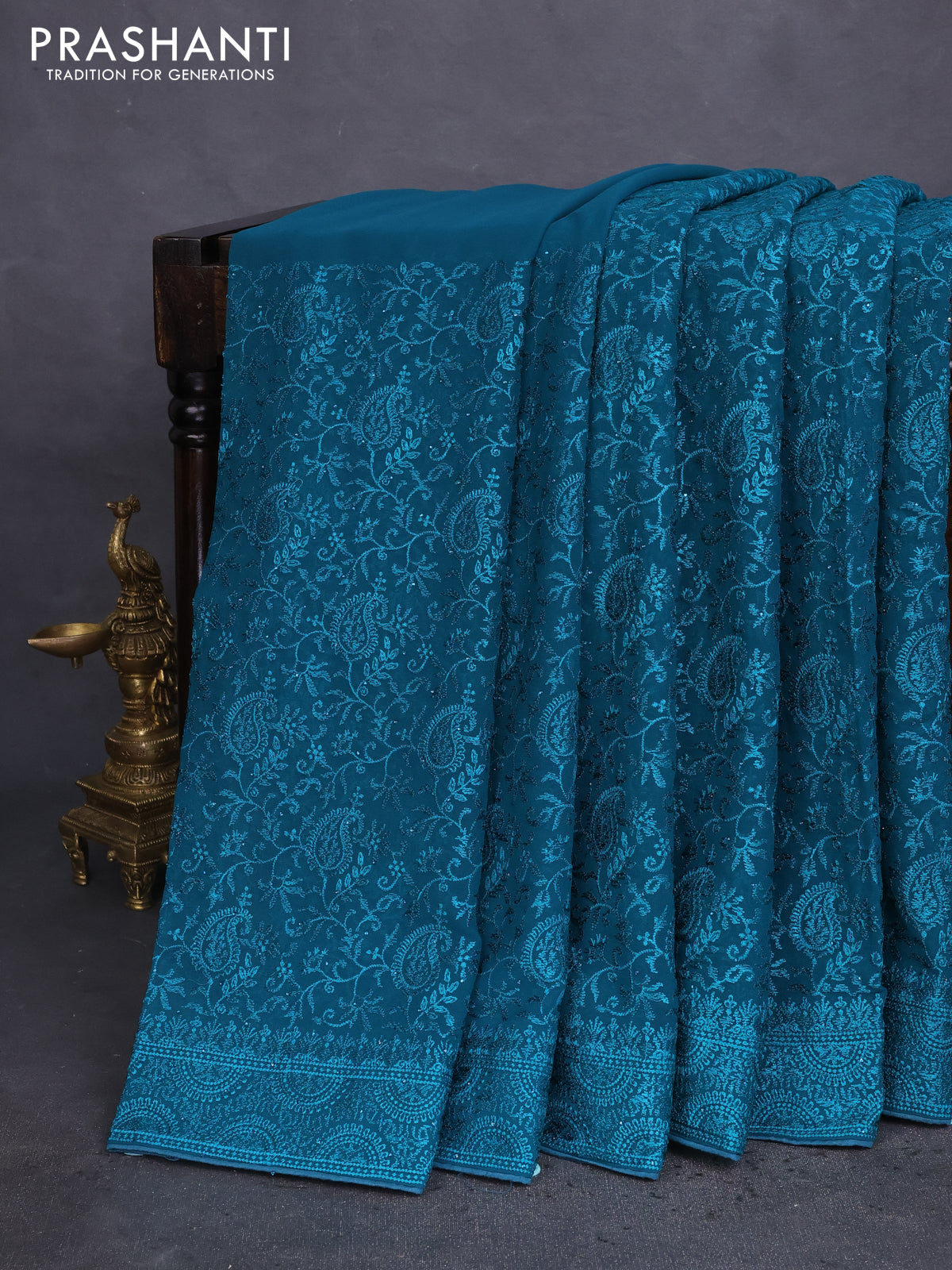Material : Semi Georgette Blouse : Attached Length of saree : 6.2 mts (5.5 mts saree & 70 cms blouse)... Read more