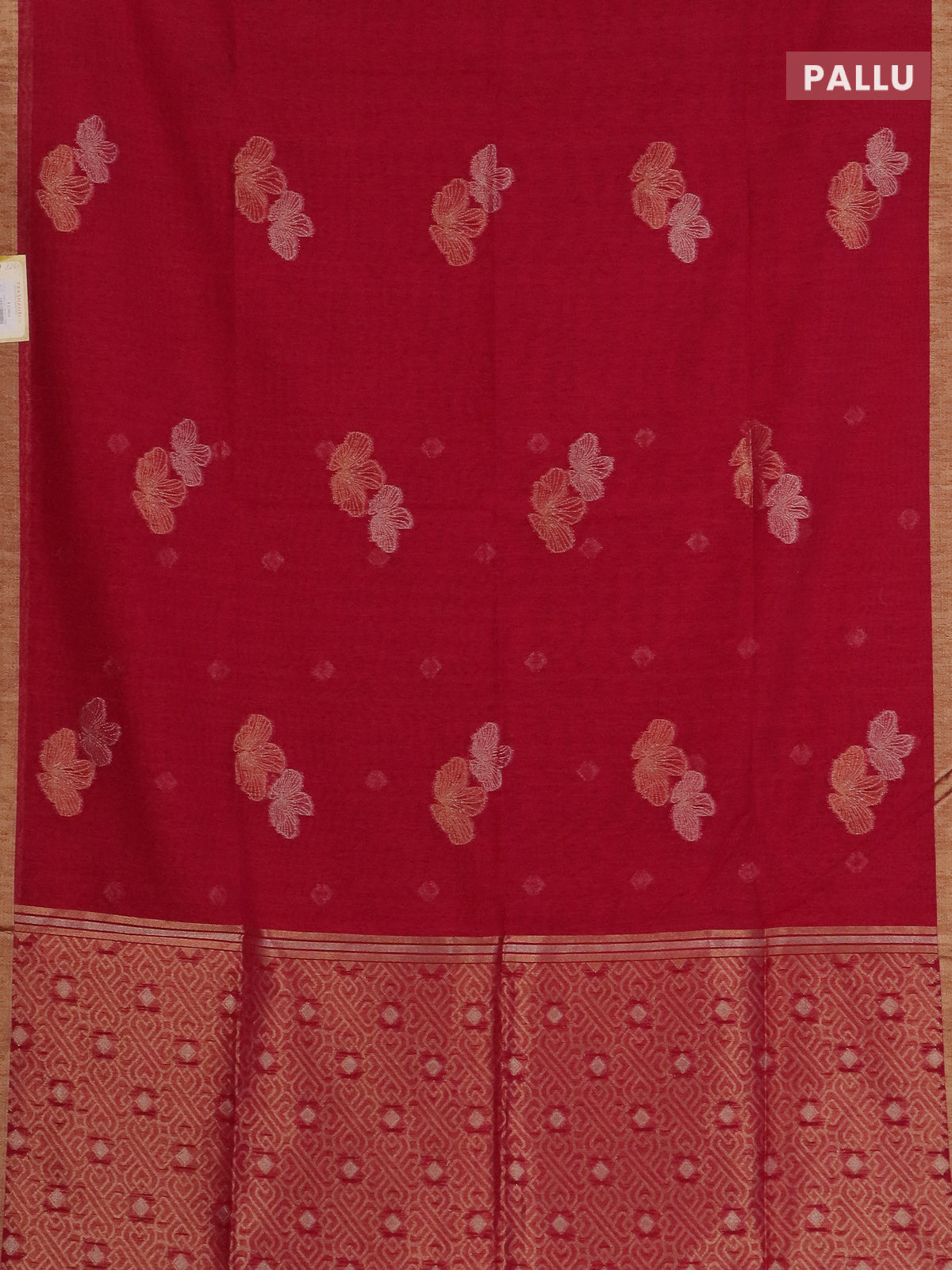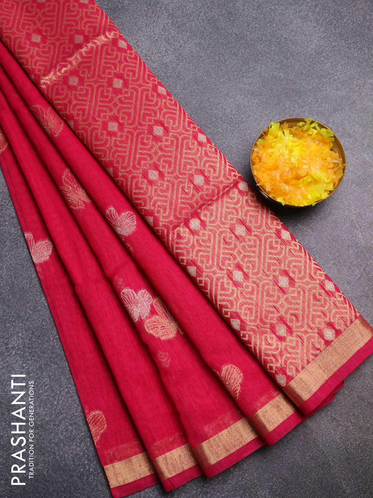 Semi jute linen saree magenta pink with silver & gold zari woven buttas and zari woven border