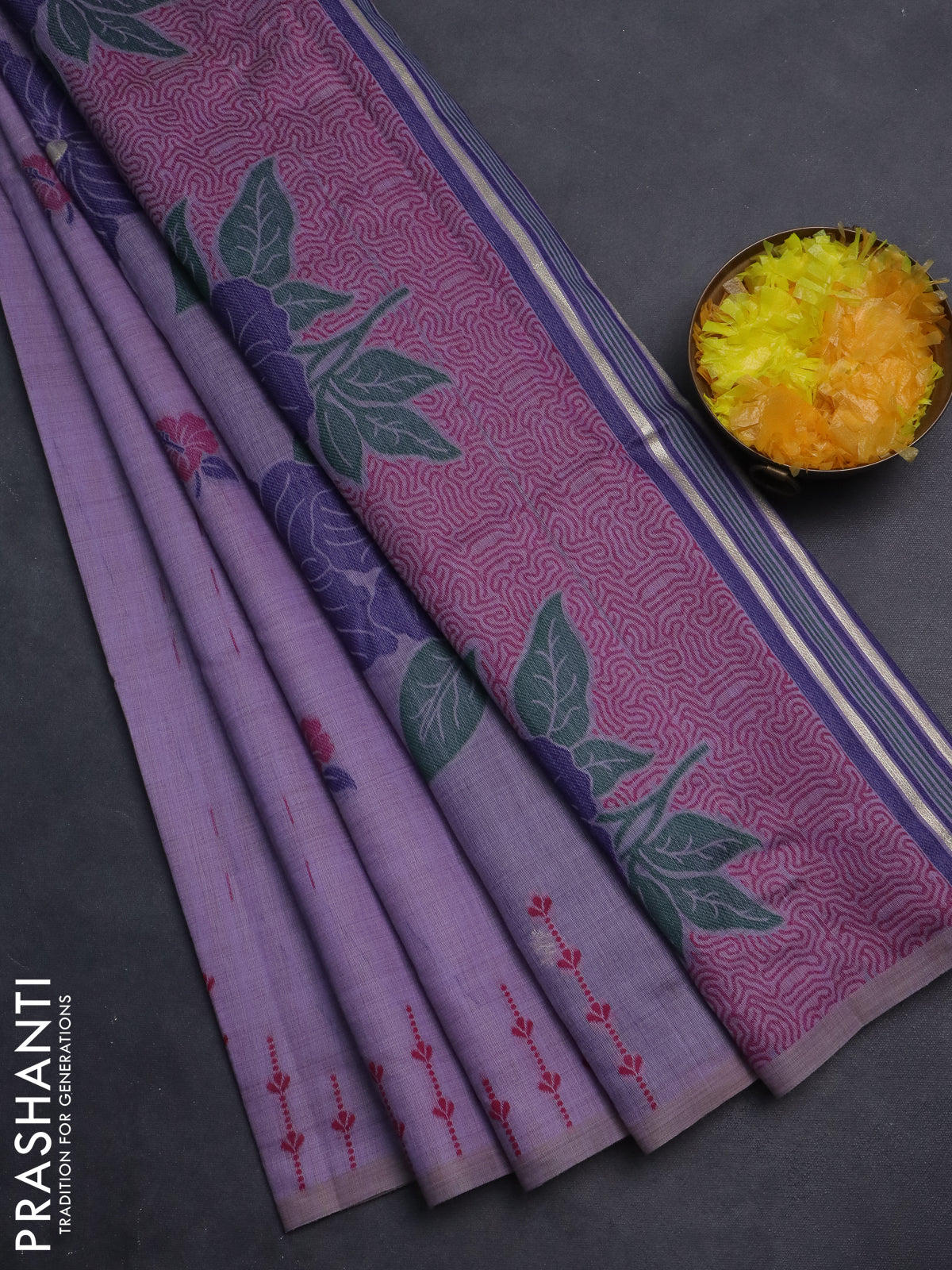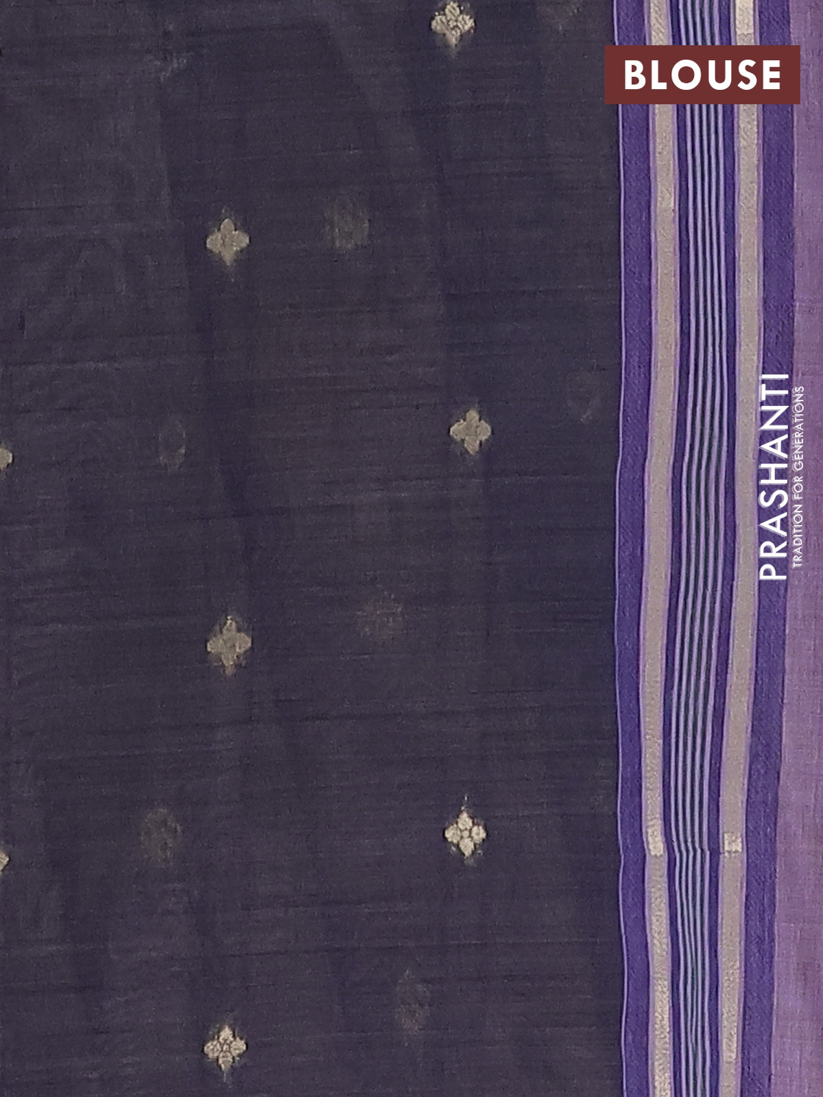 Semi jute silk saree lavender and dark blue with thread woven buttas and floral design weaving pallu