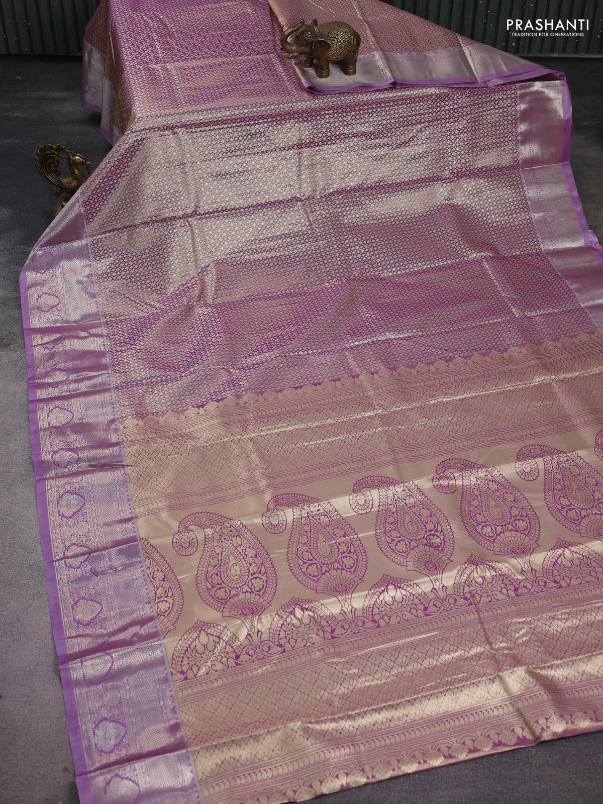 Semi kanchipuram tissue silk saree dual shade of lavender and lavender with allover silver zari woven brocade weaves and zari woven border