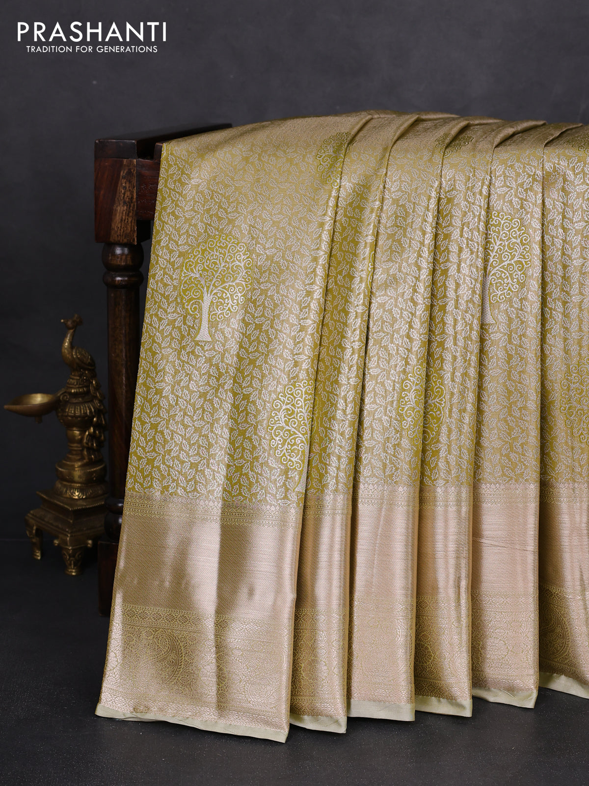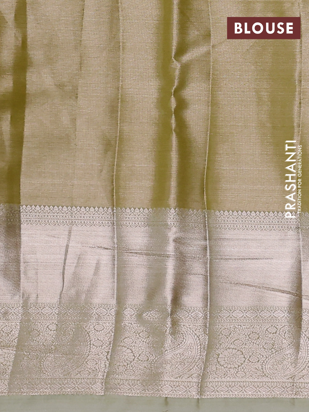 Semi kanchipuram tissue silk saree lime green and elaichi green with allover silver zari woven brocade weaves and long zari woven border