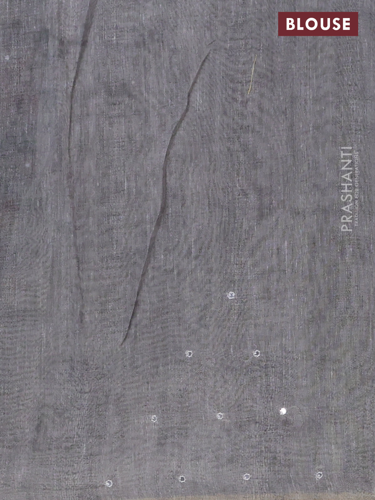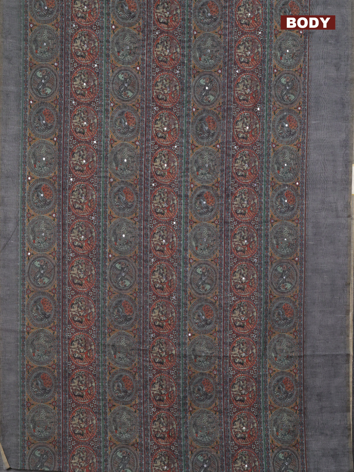 Semi linen saree pastel grey with madhubani prints & mirror work and simple border