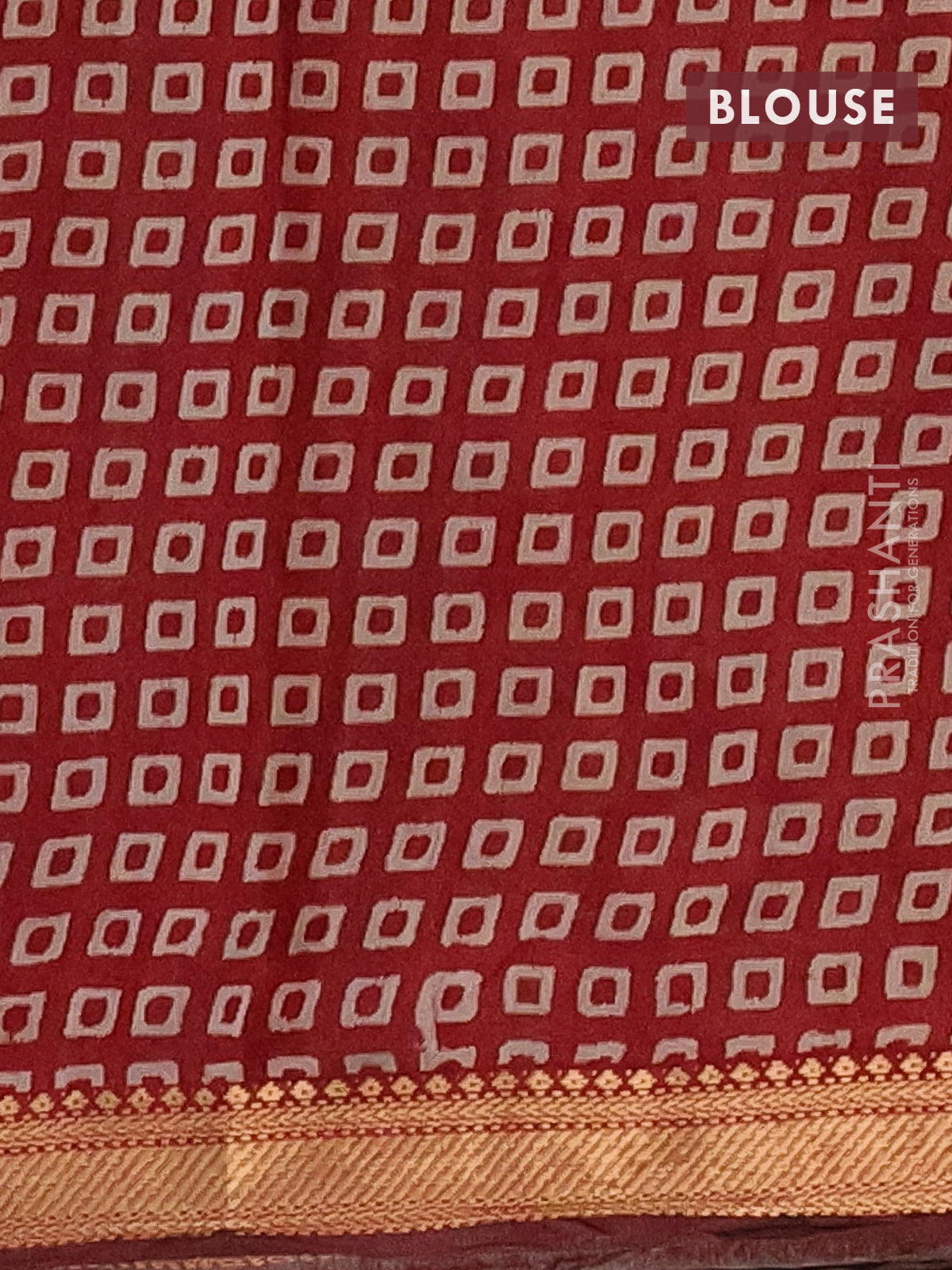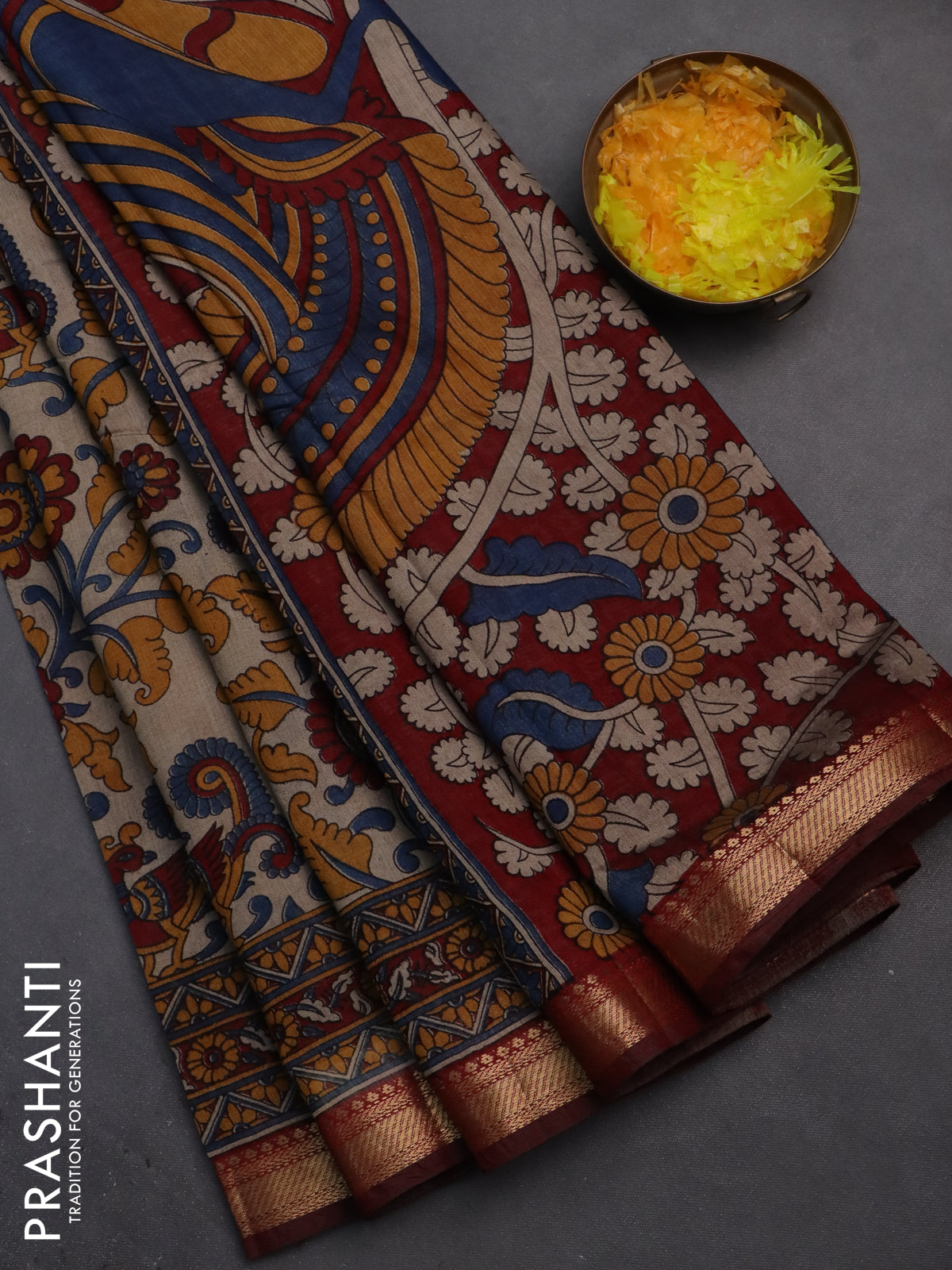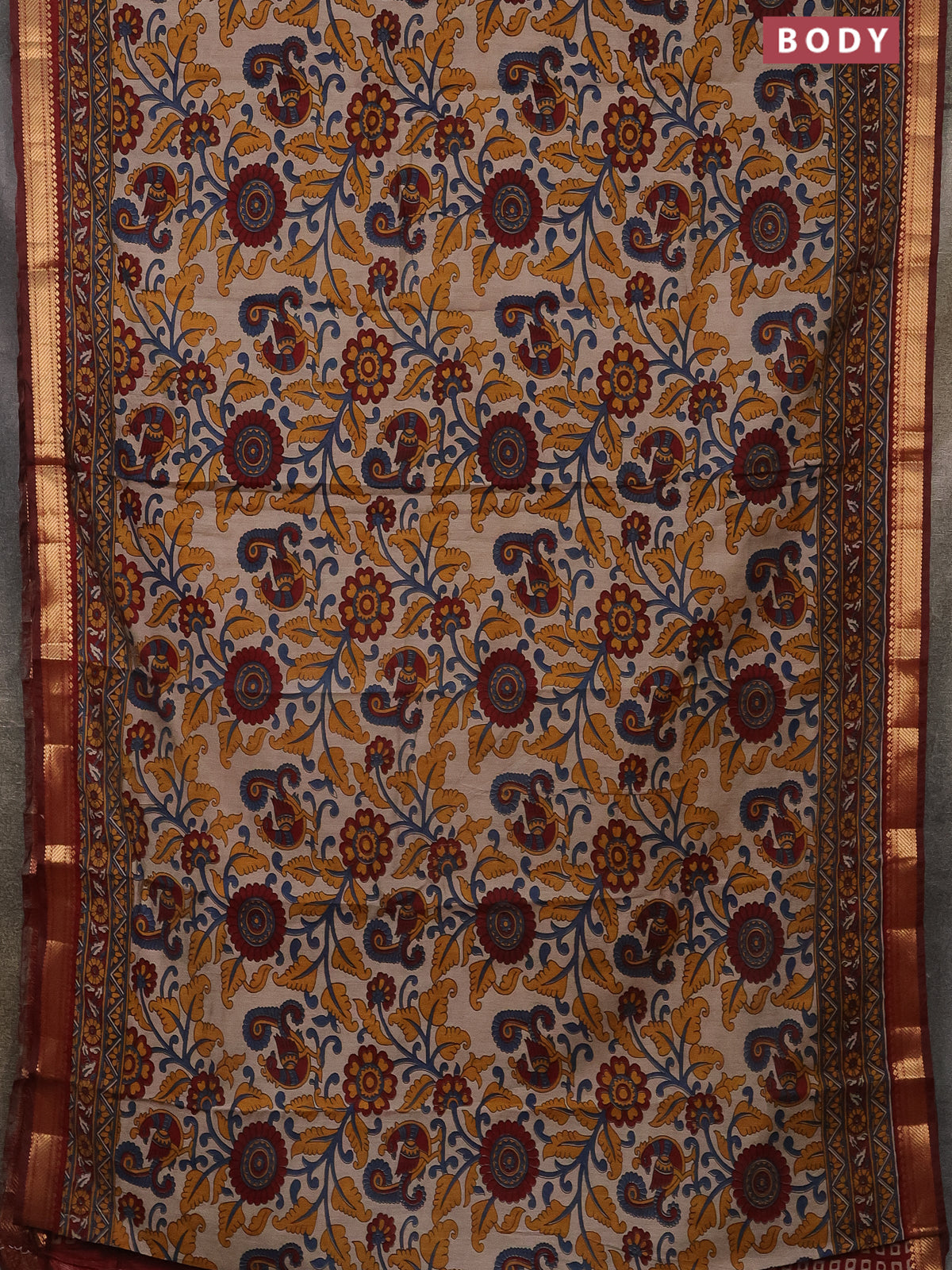 Semi maheshwari cotton saree beige and maroon with allover kalamkari prints and zari woven border