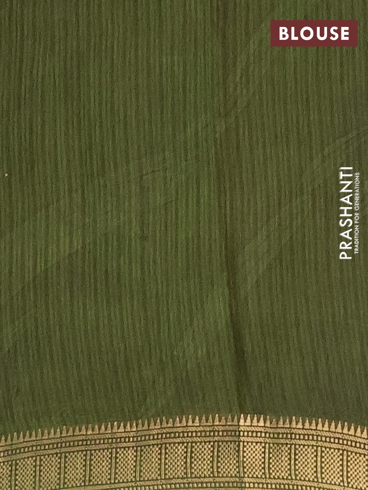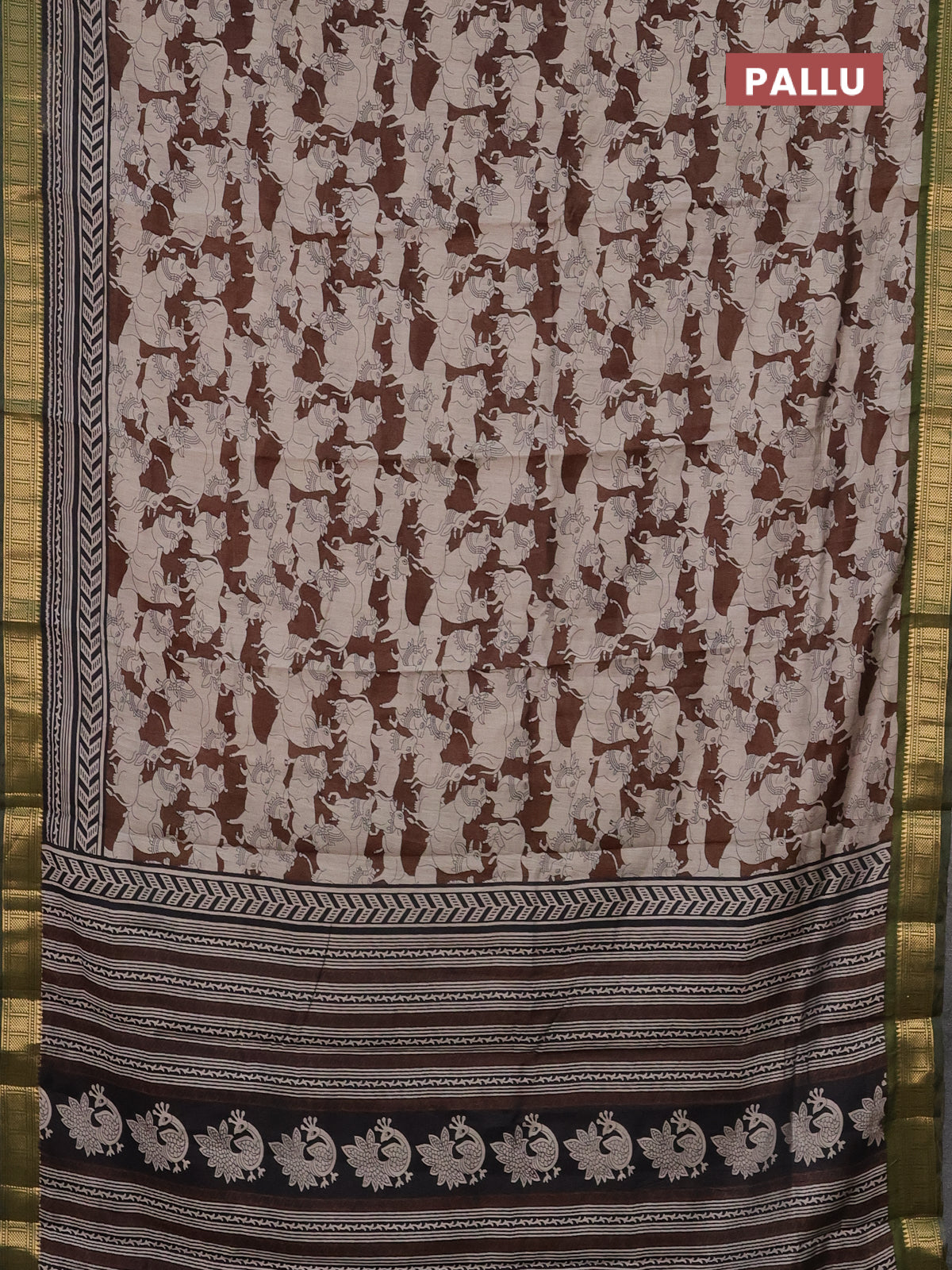 Semi maheshwari cotton saree brown and sap green with allover pichwai prints and zari woven border
