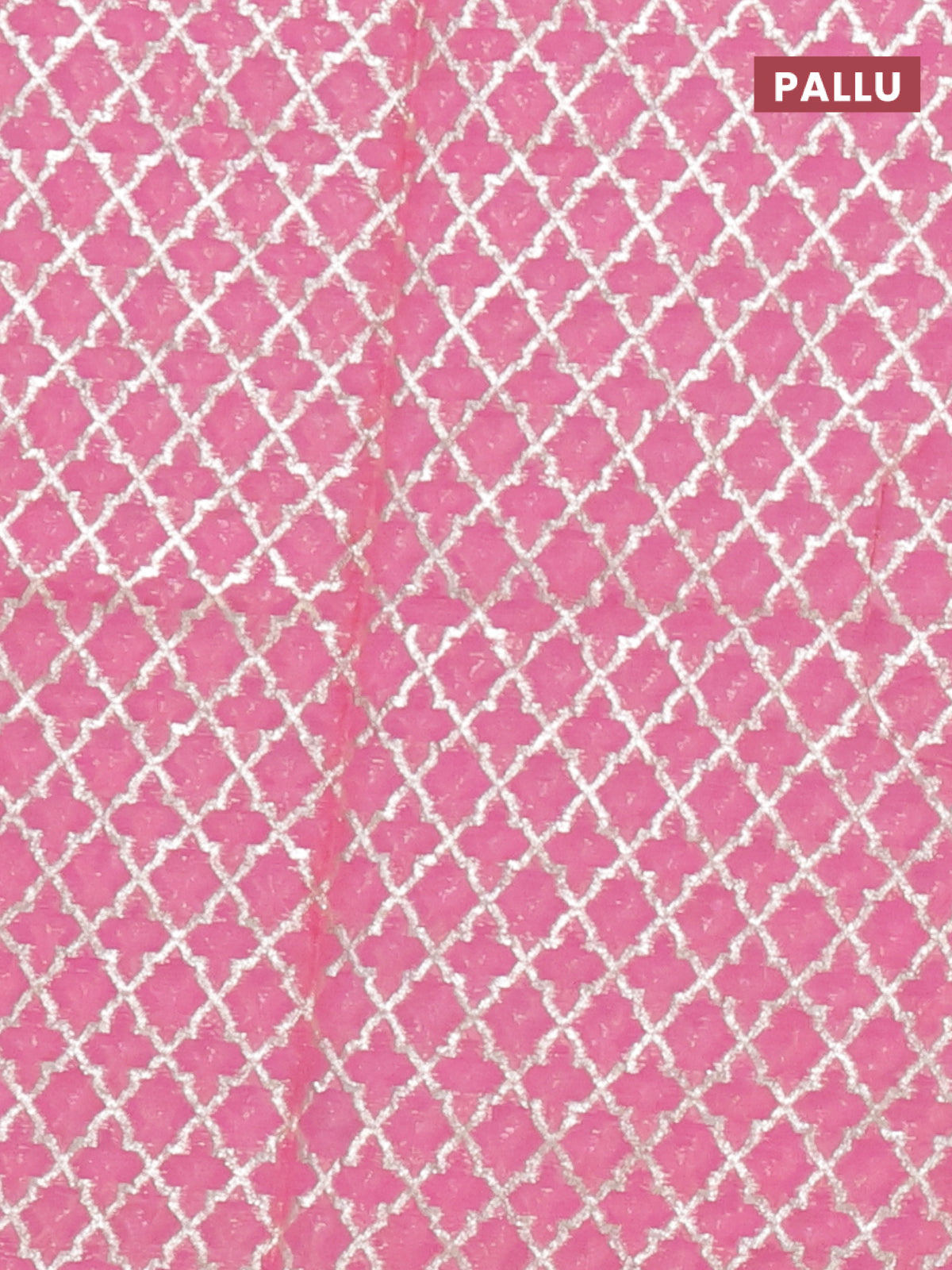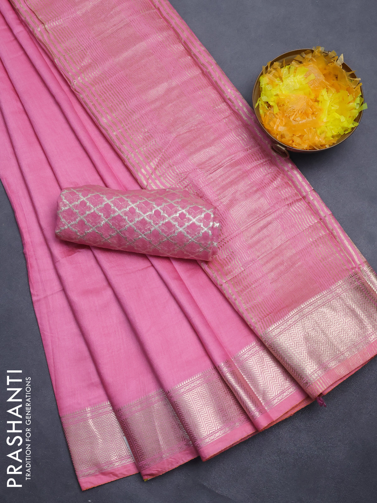Semi mangalgiri saree light pink with plain body and zari woven border