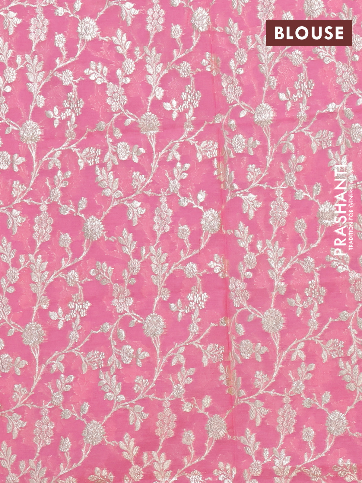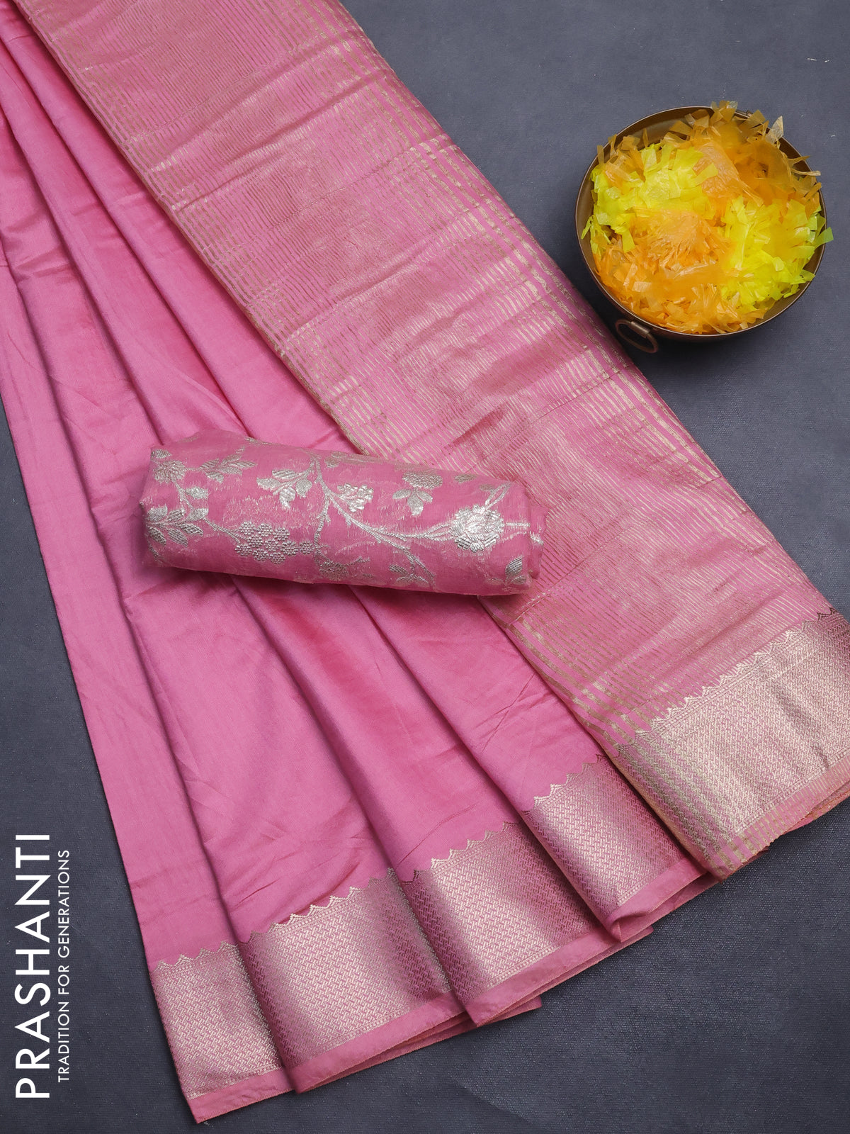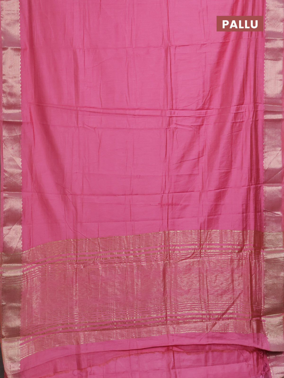 Semi mangalgiri saree mild peach pink with plain body and zari woven border