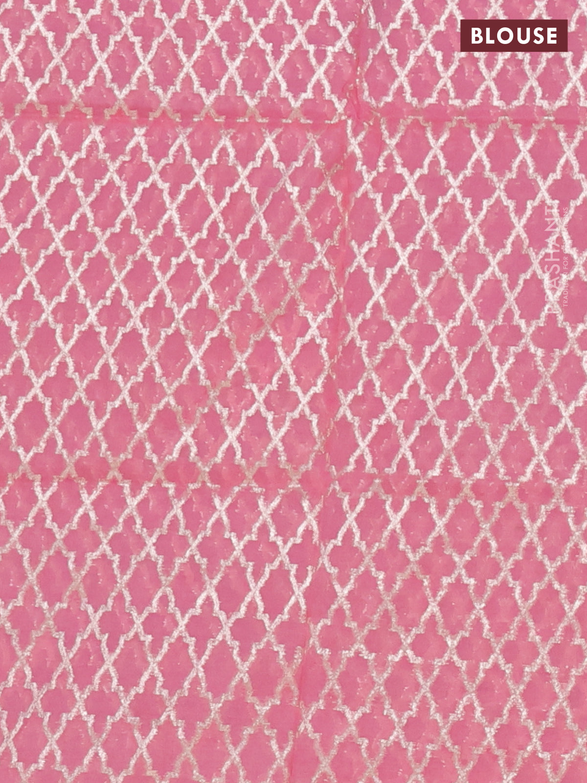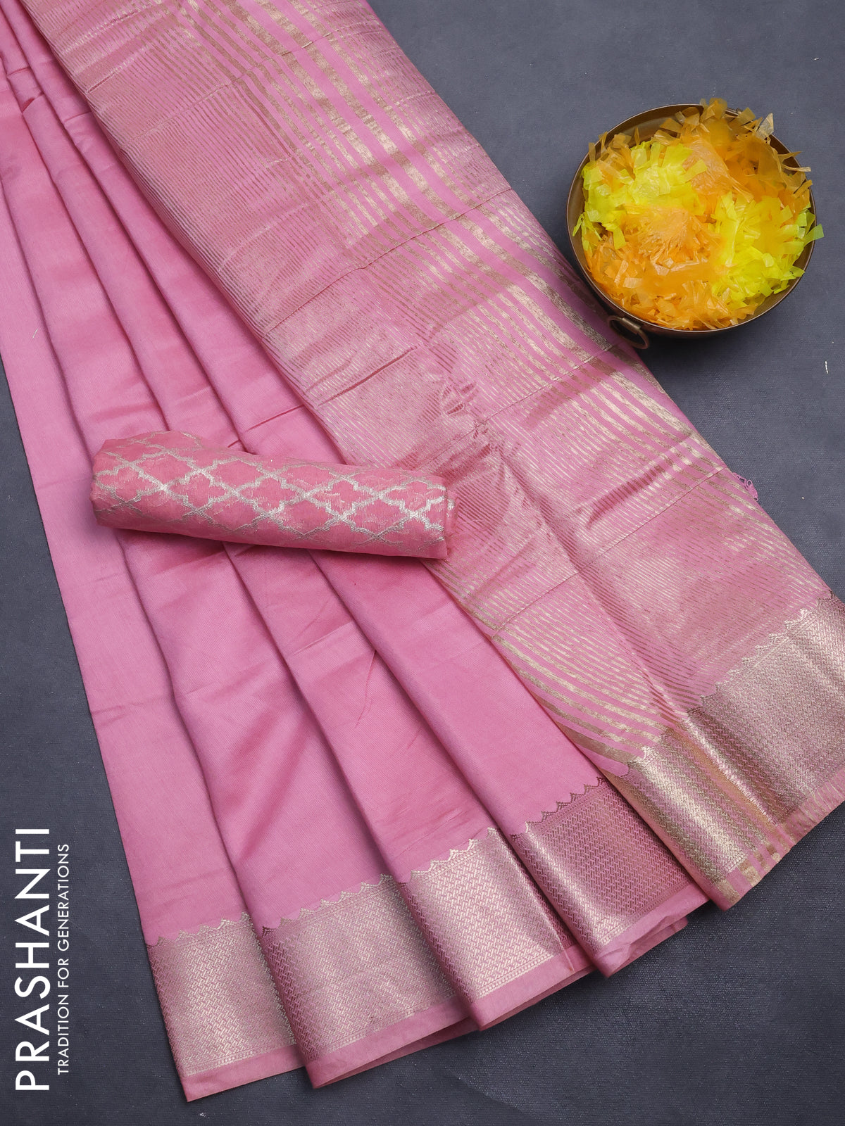 Semi mangalgiri saree pastel pink with plain body and zari woven border