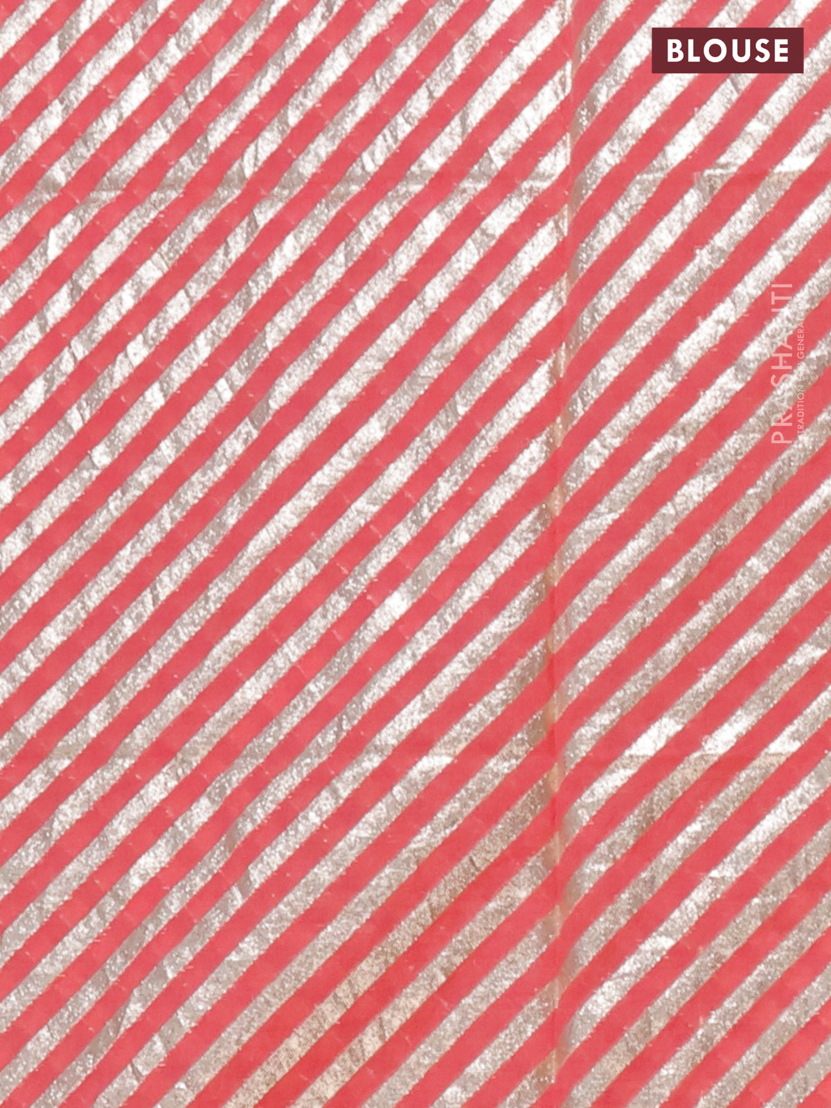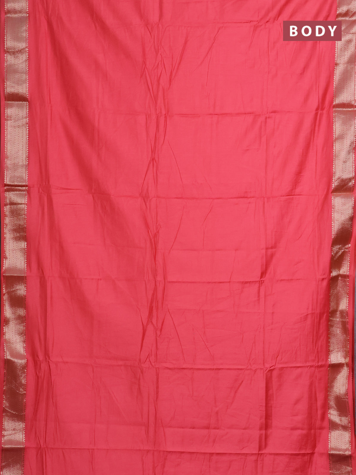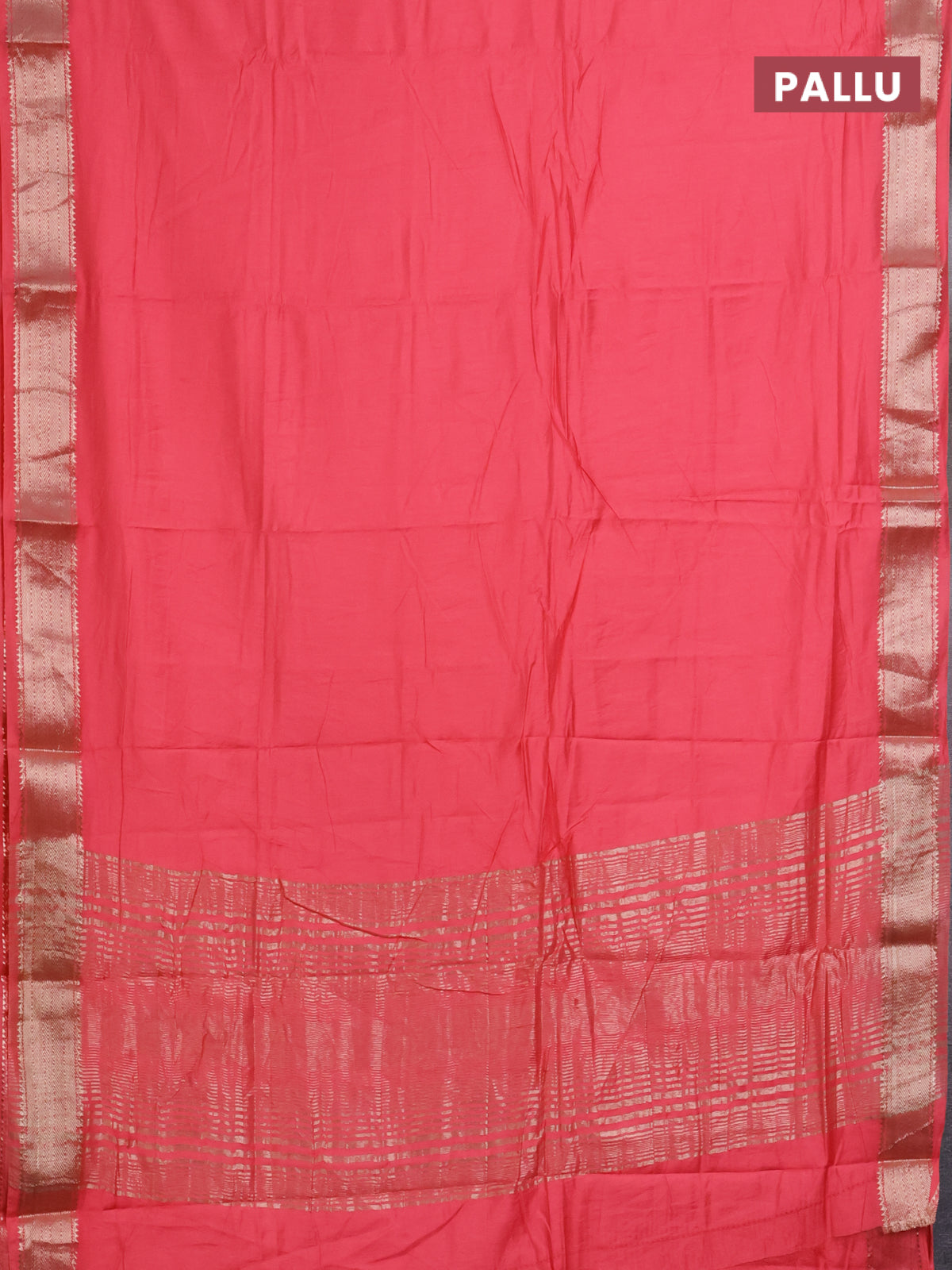 Semi mangalgiri saree peach pink with plain body and zari woven border