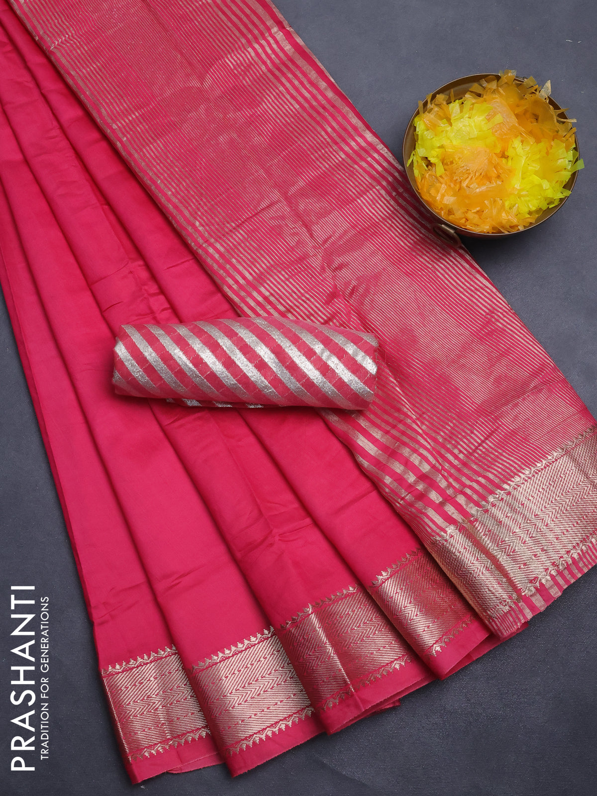 Semi mangalgiri saree pink with plain body and zari woven border