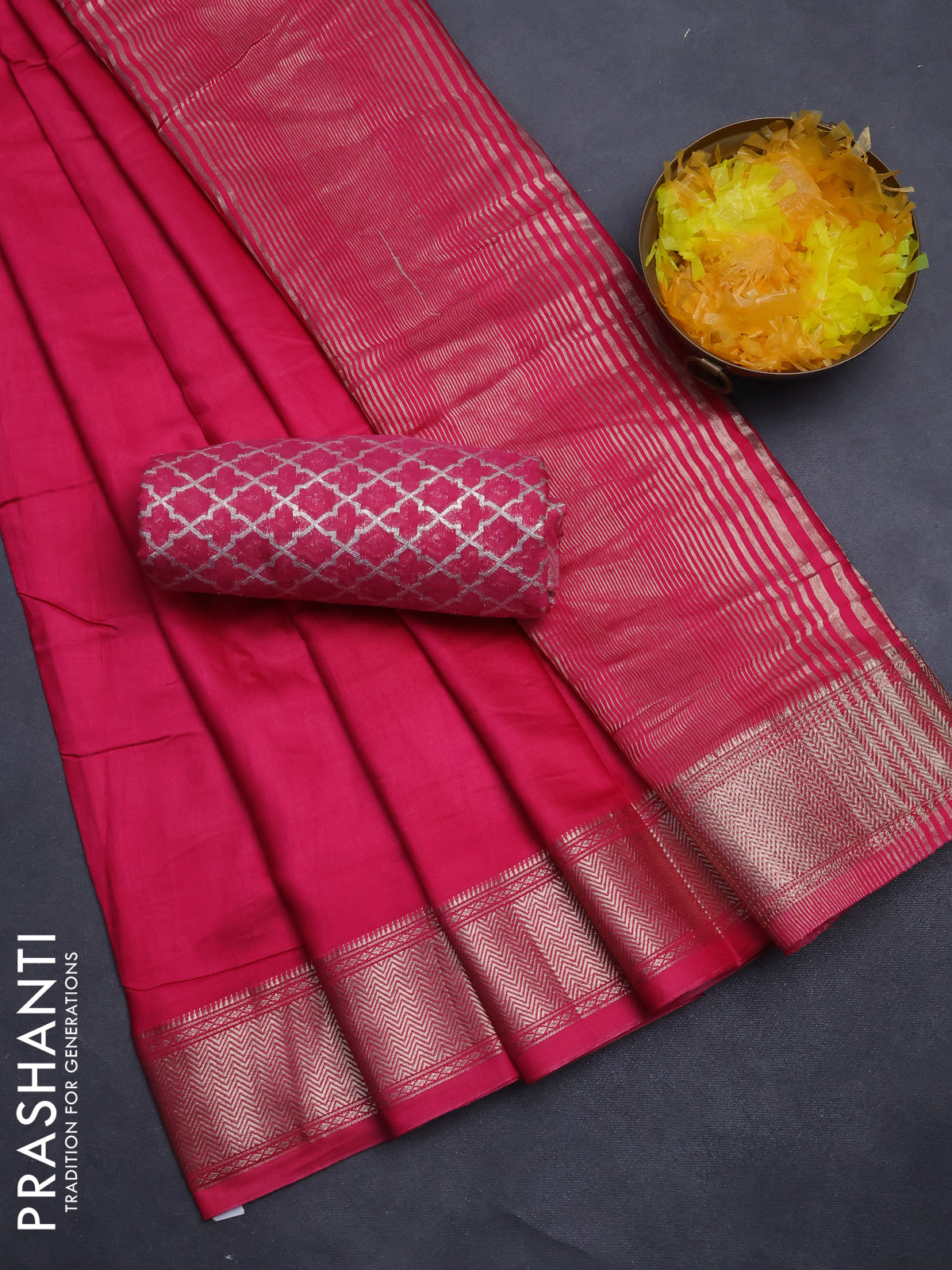 Semi mangalgiri saree pink with plain body and zari woven border