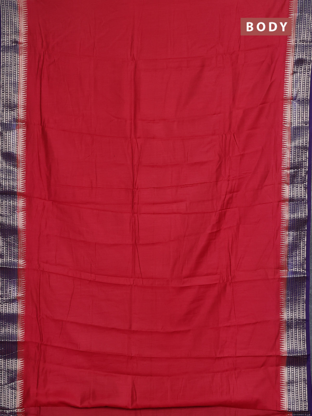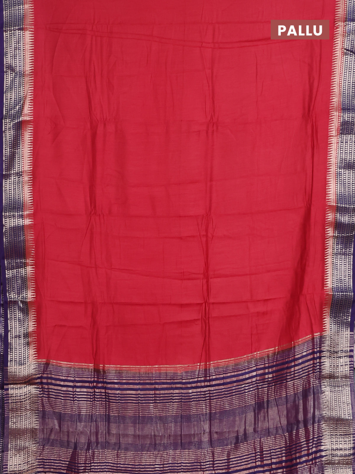 Semi mangalgiri saree red and violet with plain body and zari woven border