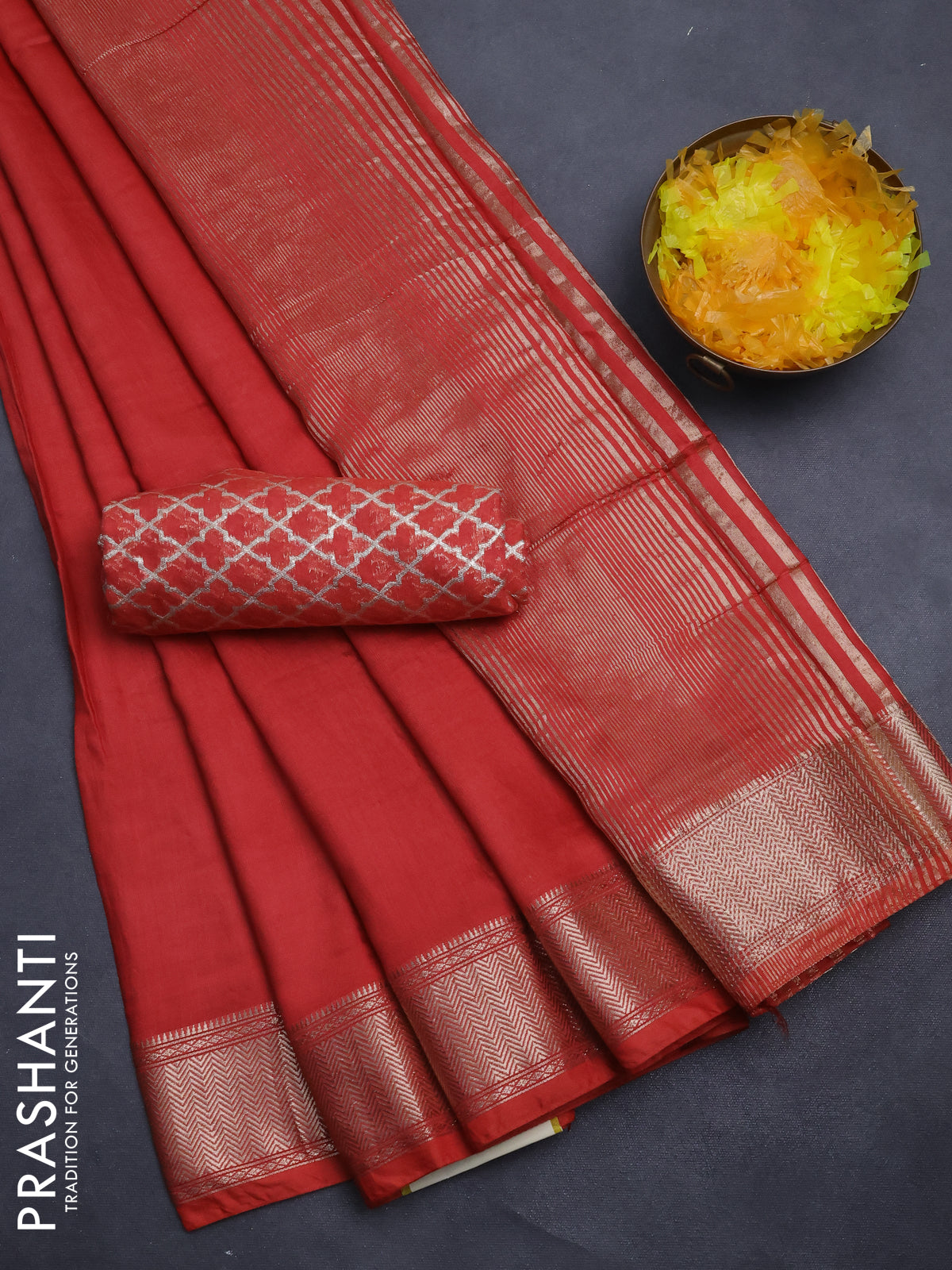 Semi mangalgiri saree rust shade with plain body and zari woven border