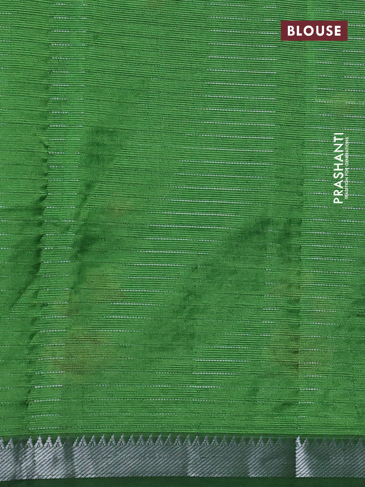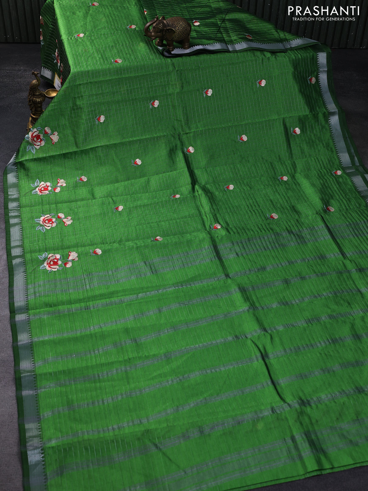 Semi Mangalgiri silk cotton saree green with allover silver zari checks & embroidery work buttas and silver zari woven border