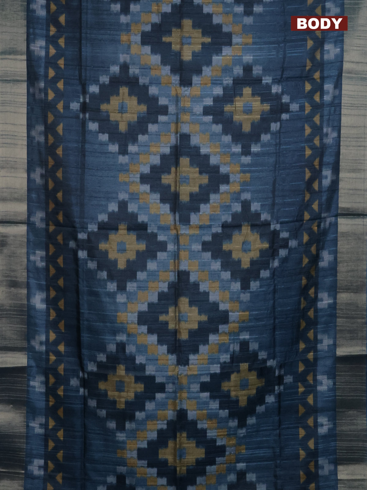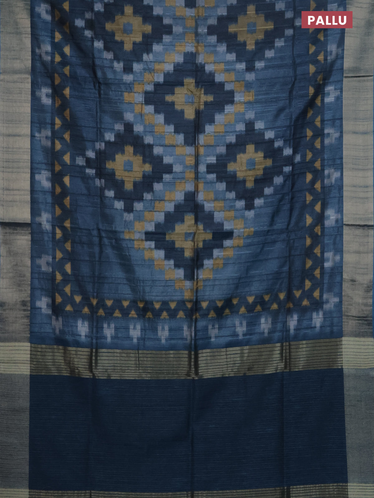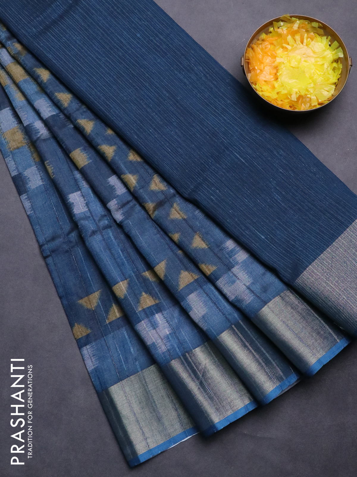 Semi matka saree dark peacock blue with allover ikat prints and zari woven border