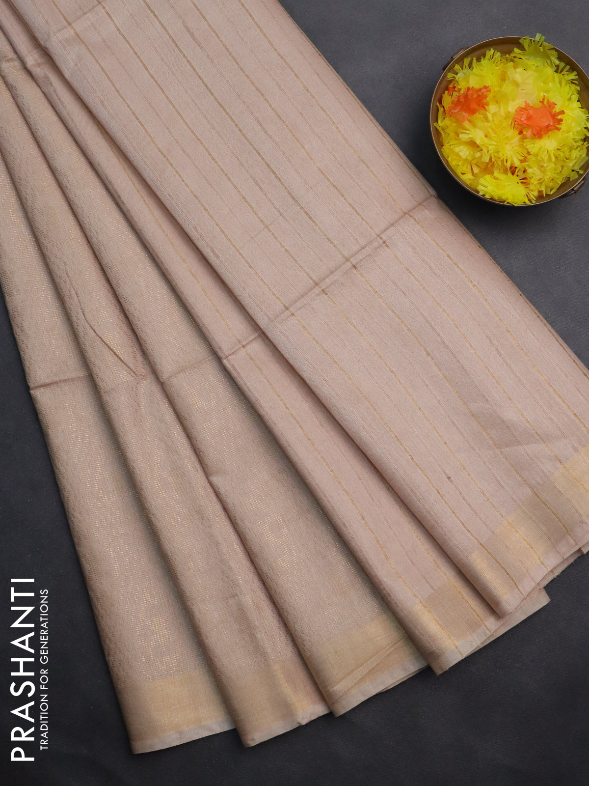 Semi munga jacquard saree beige with allover zari weaves and zari woven border