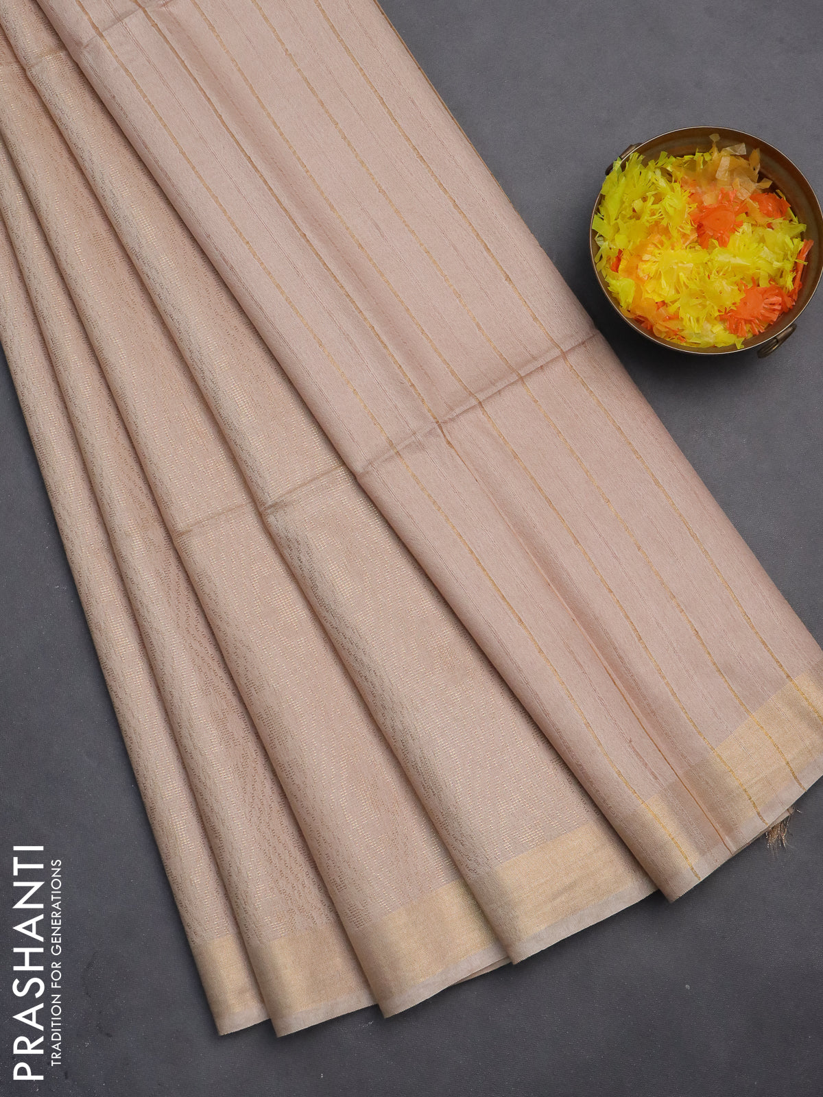 Semi munga jacquard saree beige with allover zari weaves and zari woven border
