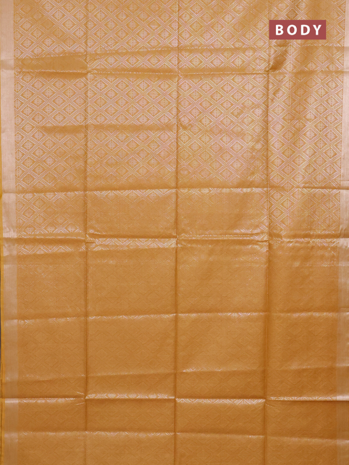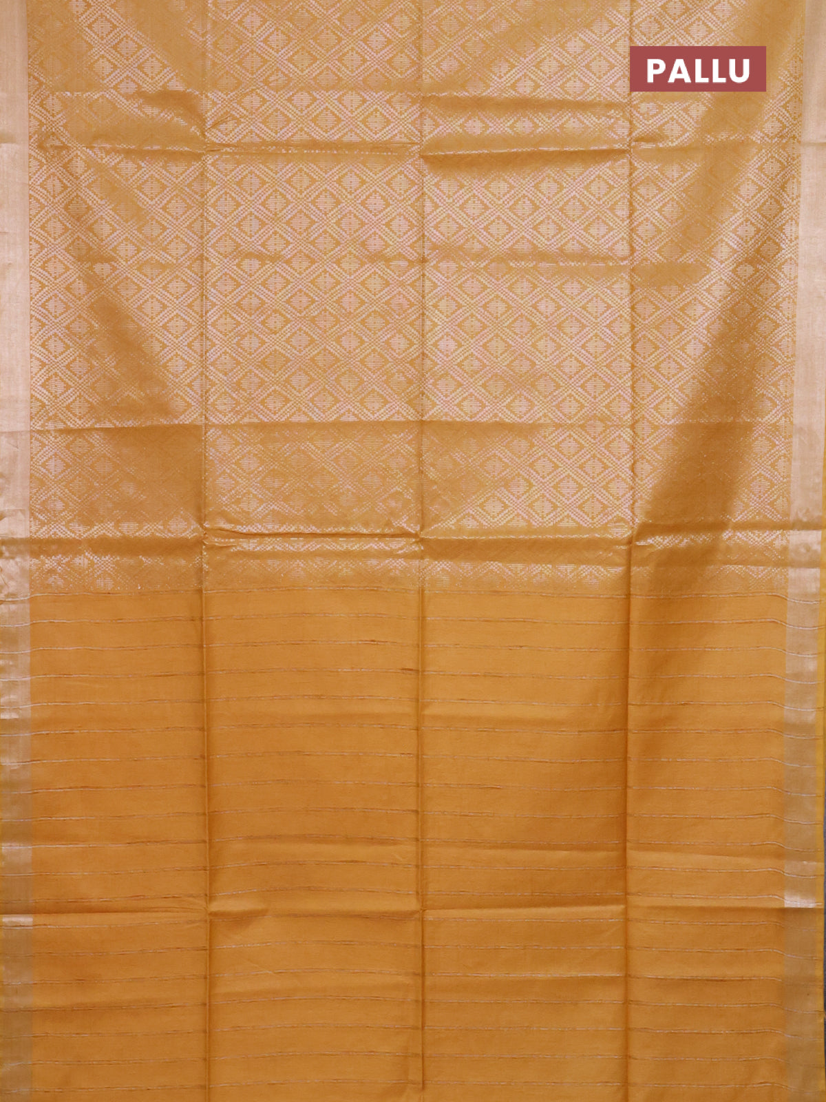 Semi munga jacquard saree mustard yellow with allover silver zari weaves and zari woven border