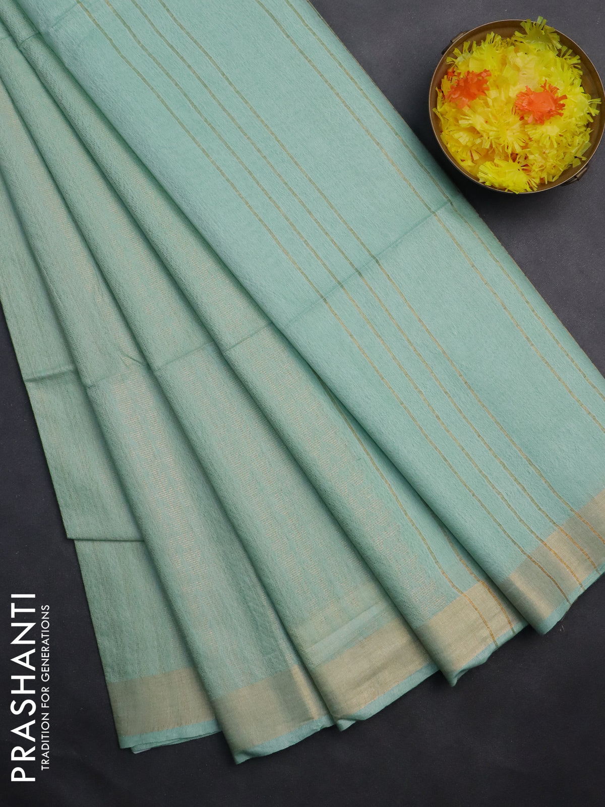 Semi munga jacquard saree pastel green with allover zari weaves and zari woven border