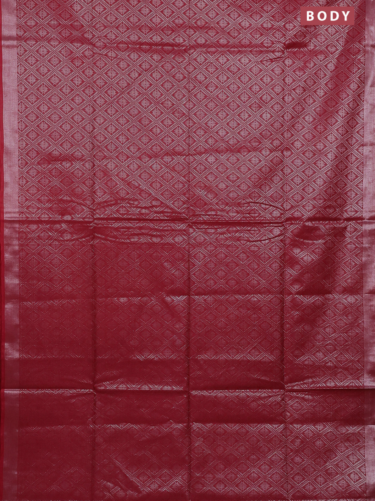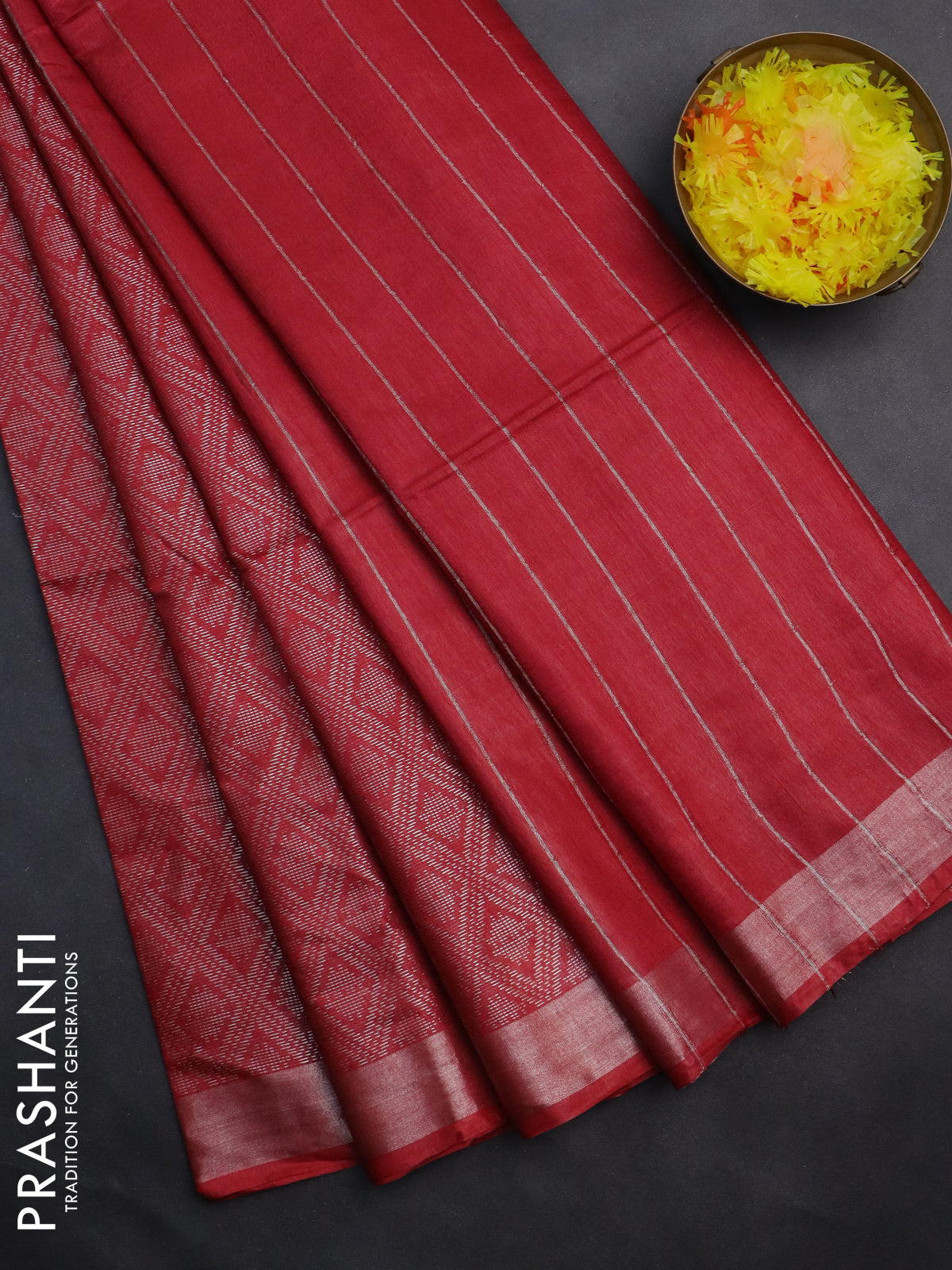 Semi munga jacquard saree red with allover silver zari weaves and zari woven border
