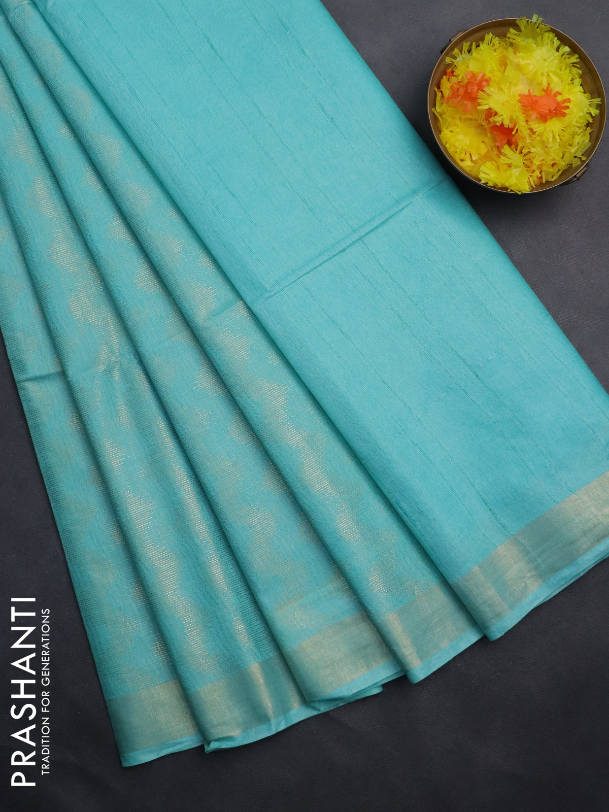Semi munga jacquard saree teal blue with allover zari weaves and zari woven border