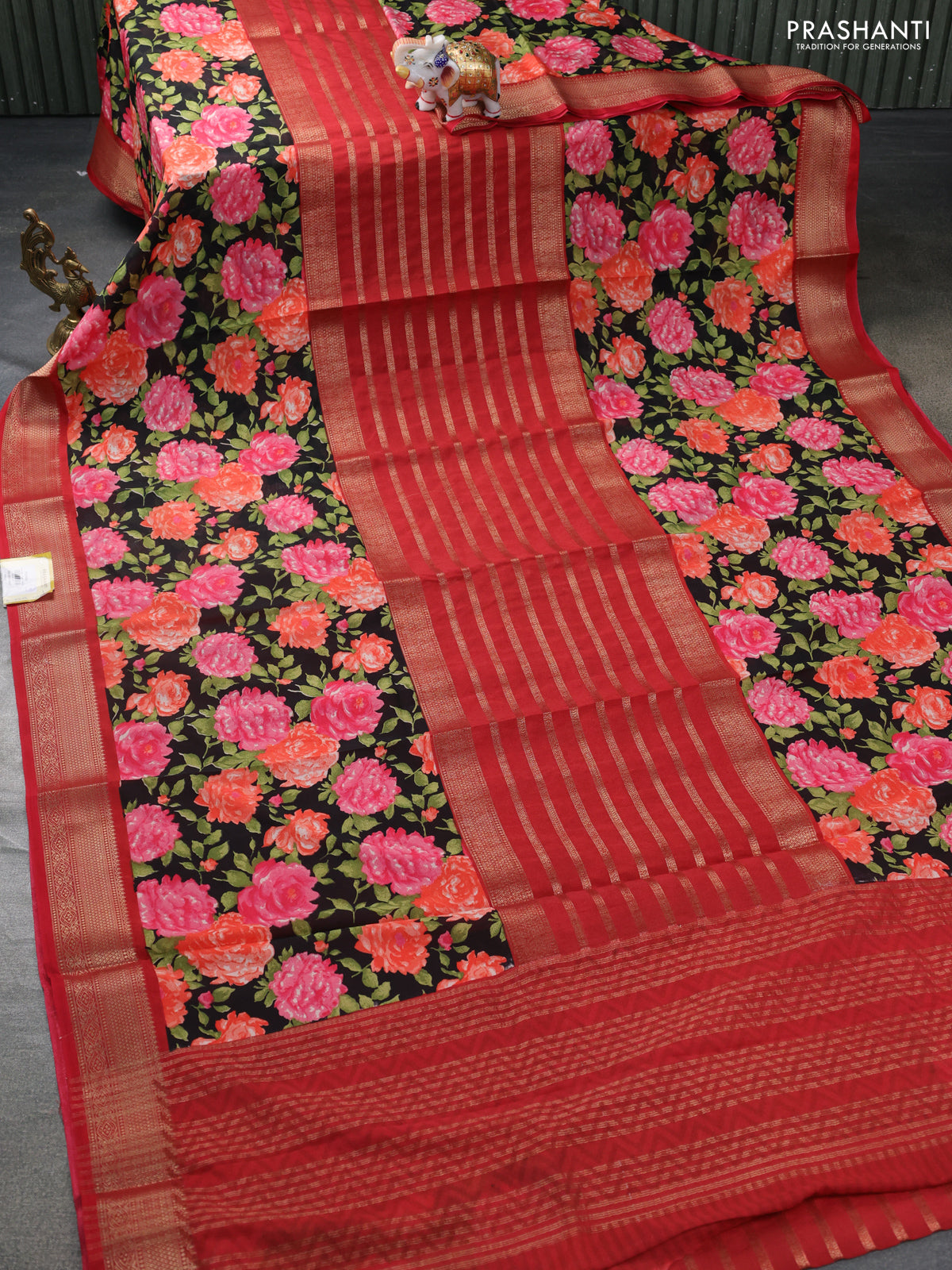 Semi mysore crepe saree maroon and black with zari weaves and long printed border