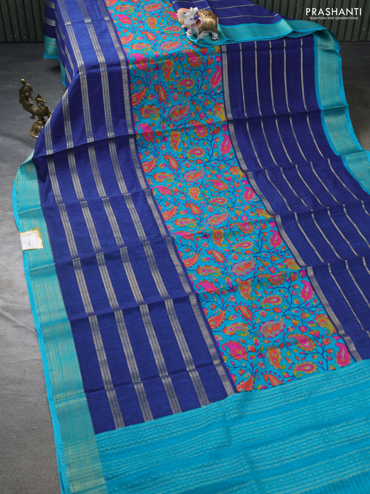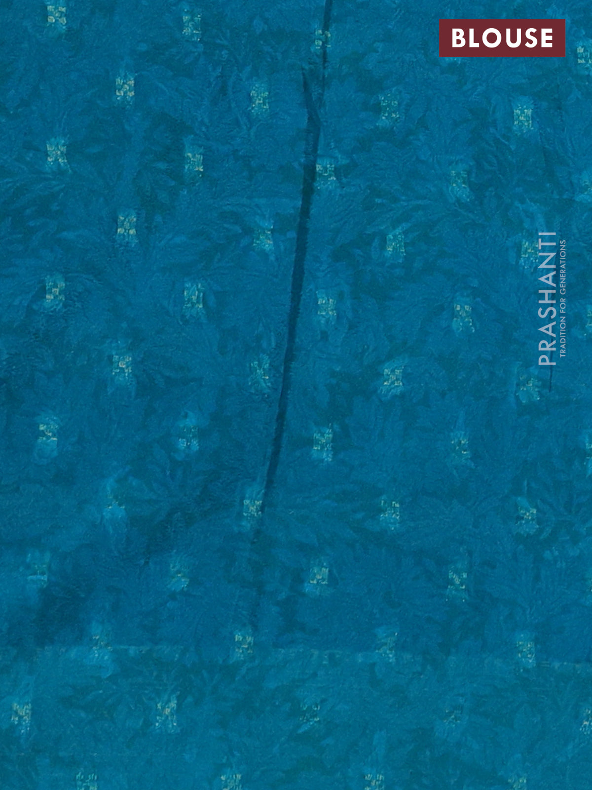 Semi mysore crepe saree teal blue and blue with panel prints and long zari woven border