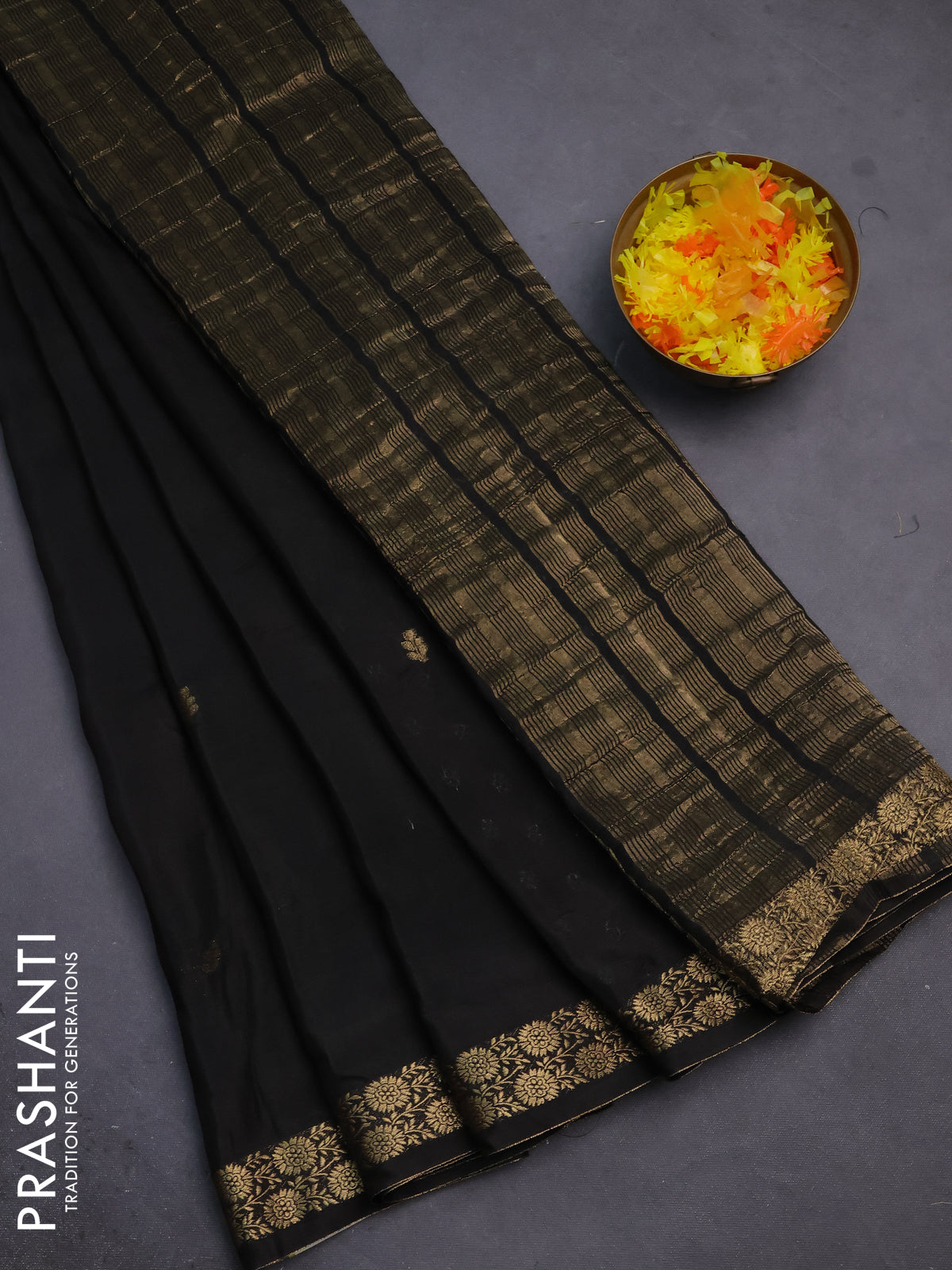 Semi mysore silk saree black with zari woven buttas and zari woven border