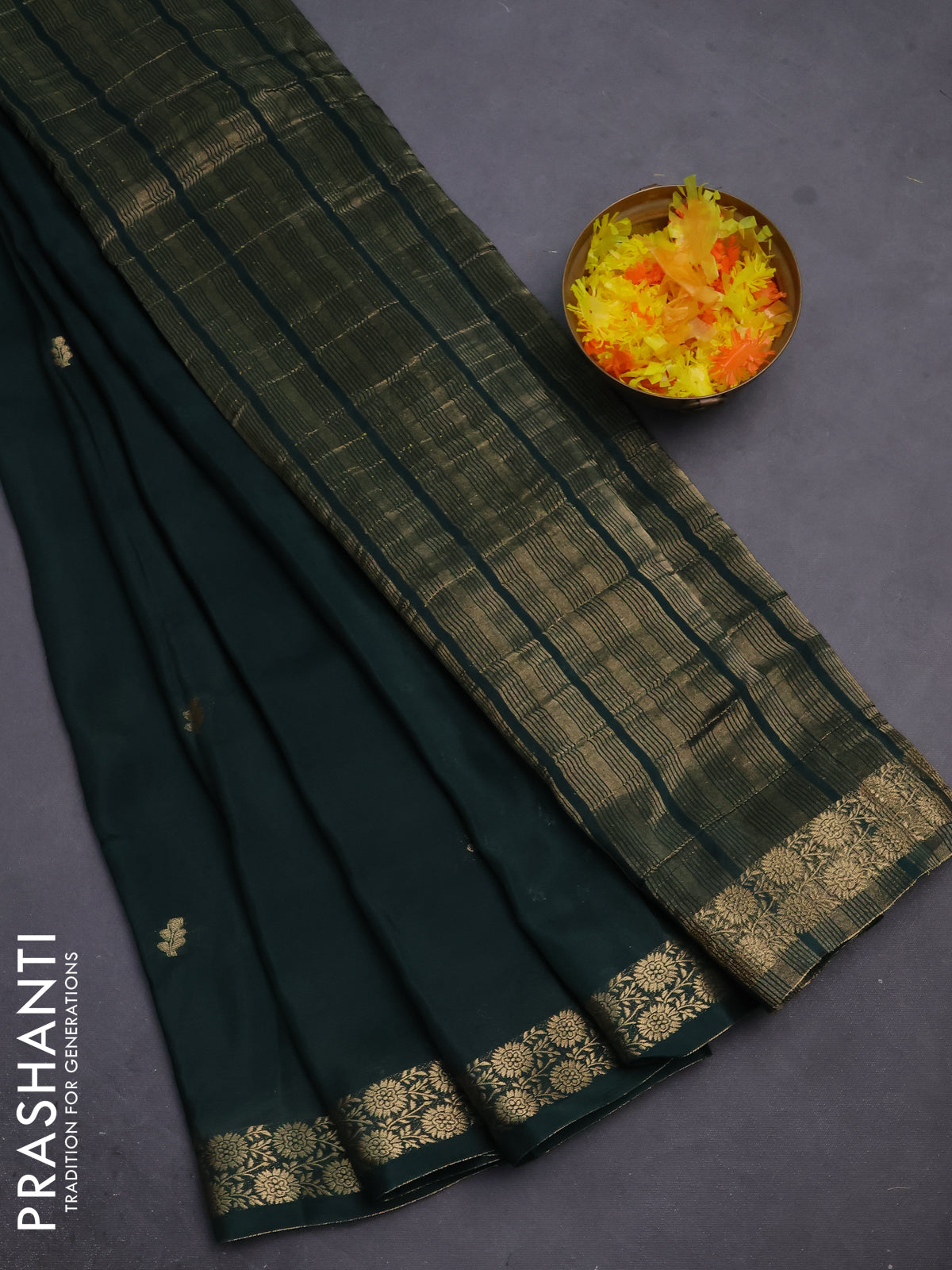 Semi mysore silk saree green with zari woven buttas and zari woven border
