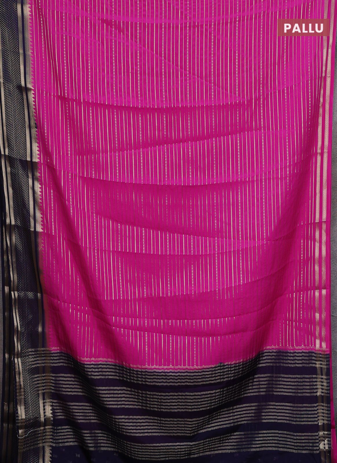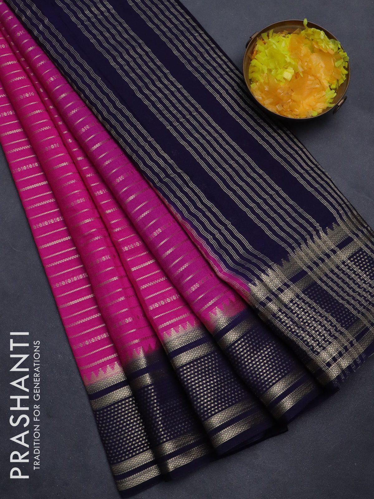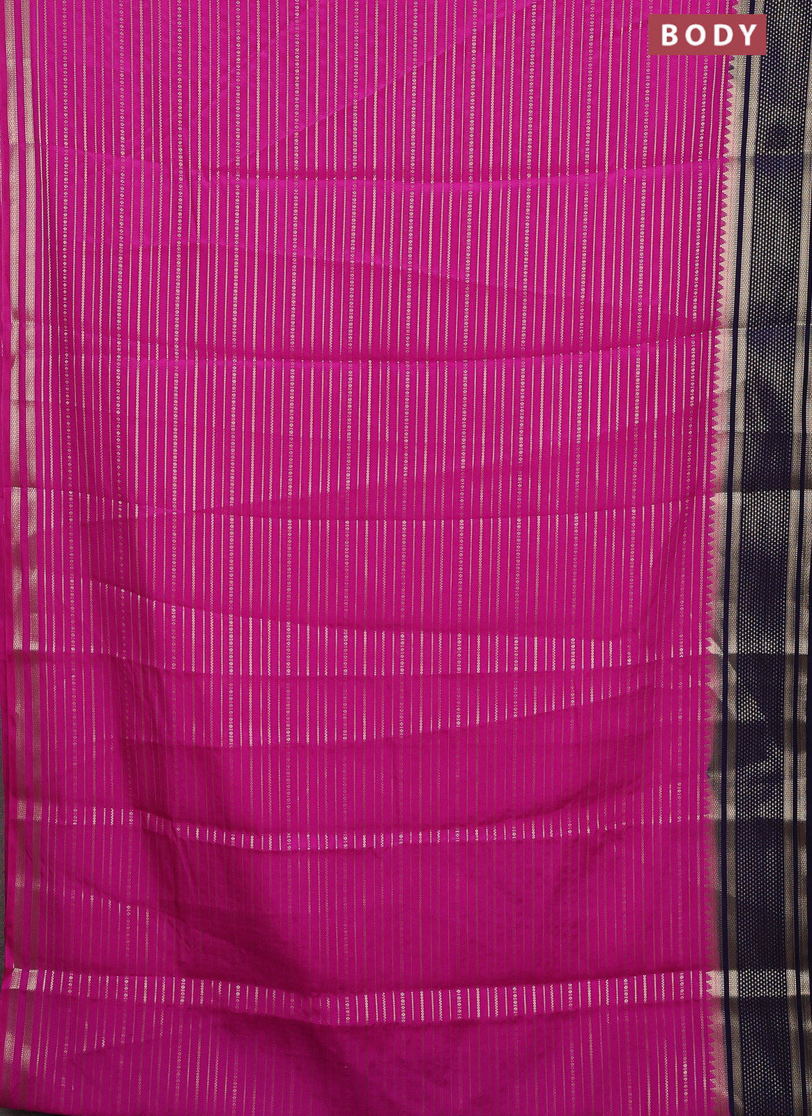 Semi mysore silk saree magenta pink and navy blue with allover zari weaves and zari woven border