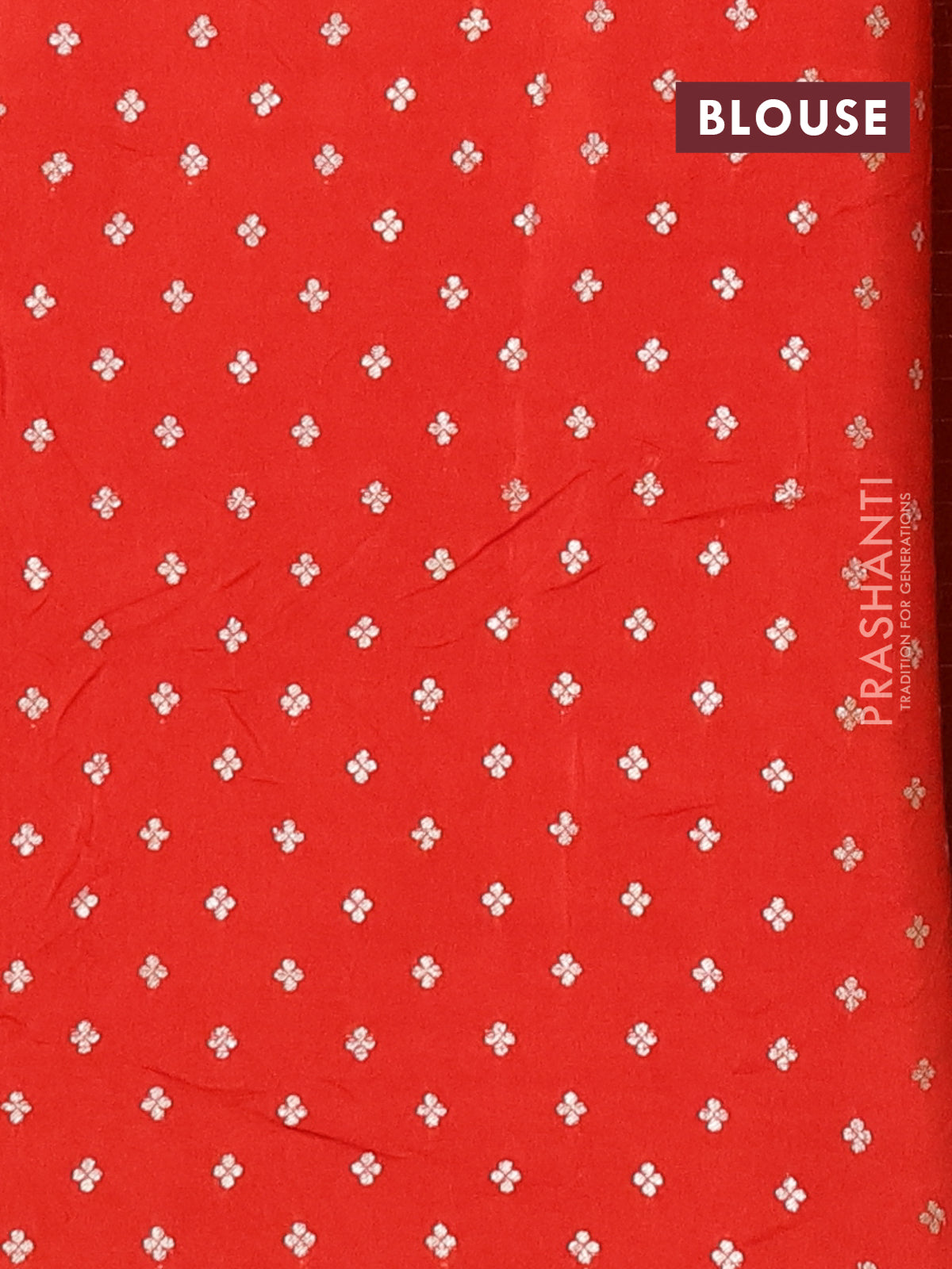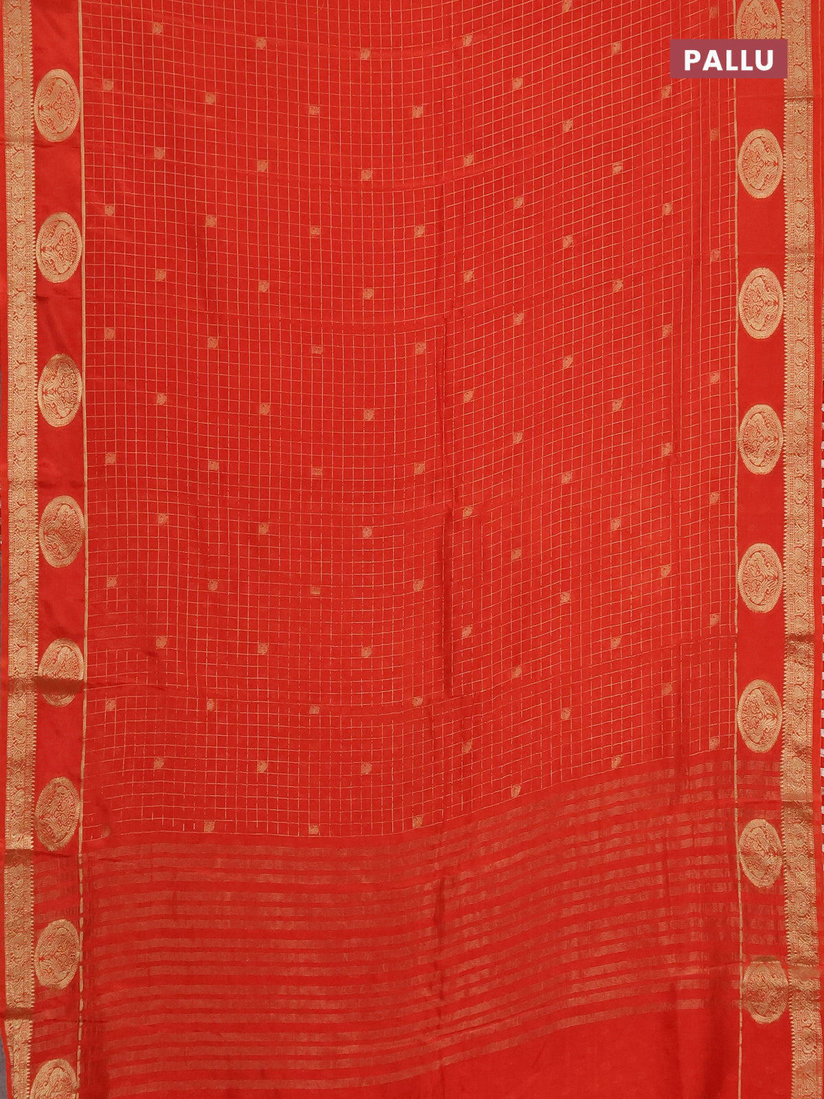 Semi mysore silk saree orange with allover zari checks & buttas and zari woven butta border