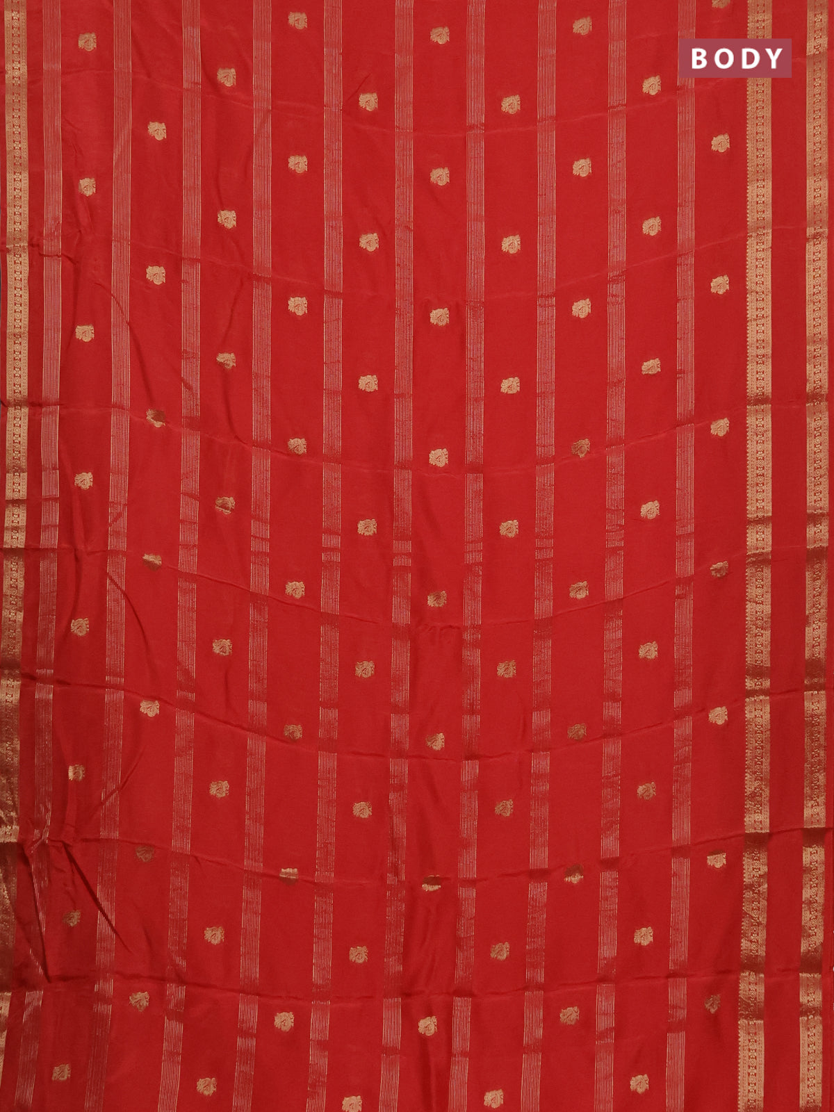 Semi mysore silk saree orange with zari stripes & annam buttas and rettapet zari woven border