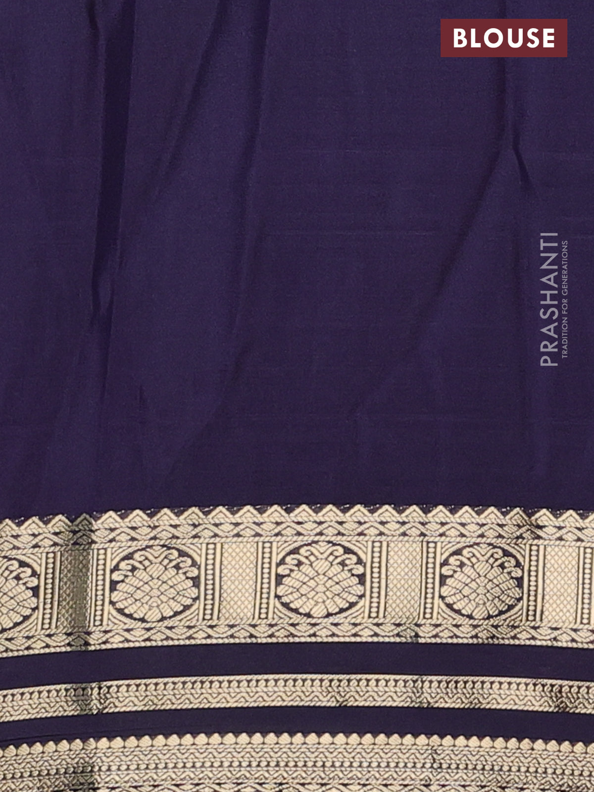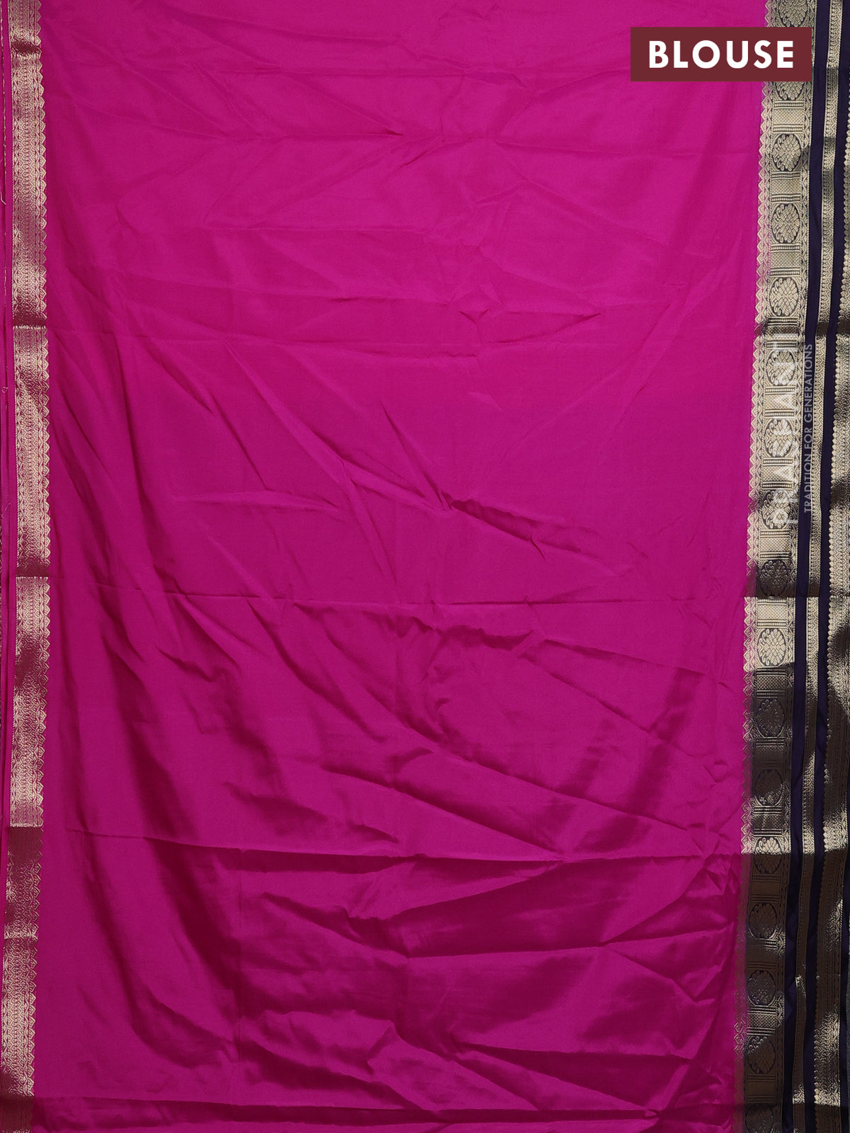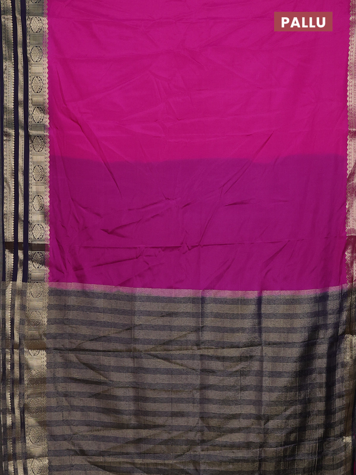 Semi mysore silk saree pink and dark blue with plain body and zari woven border