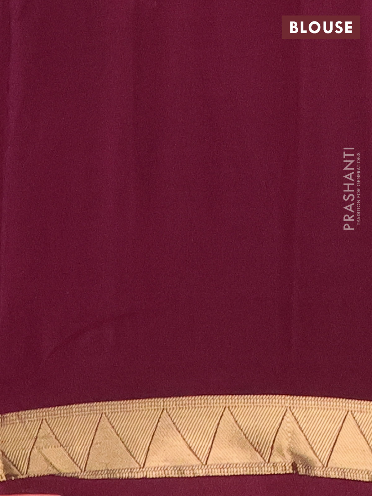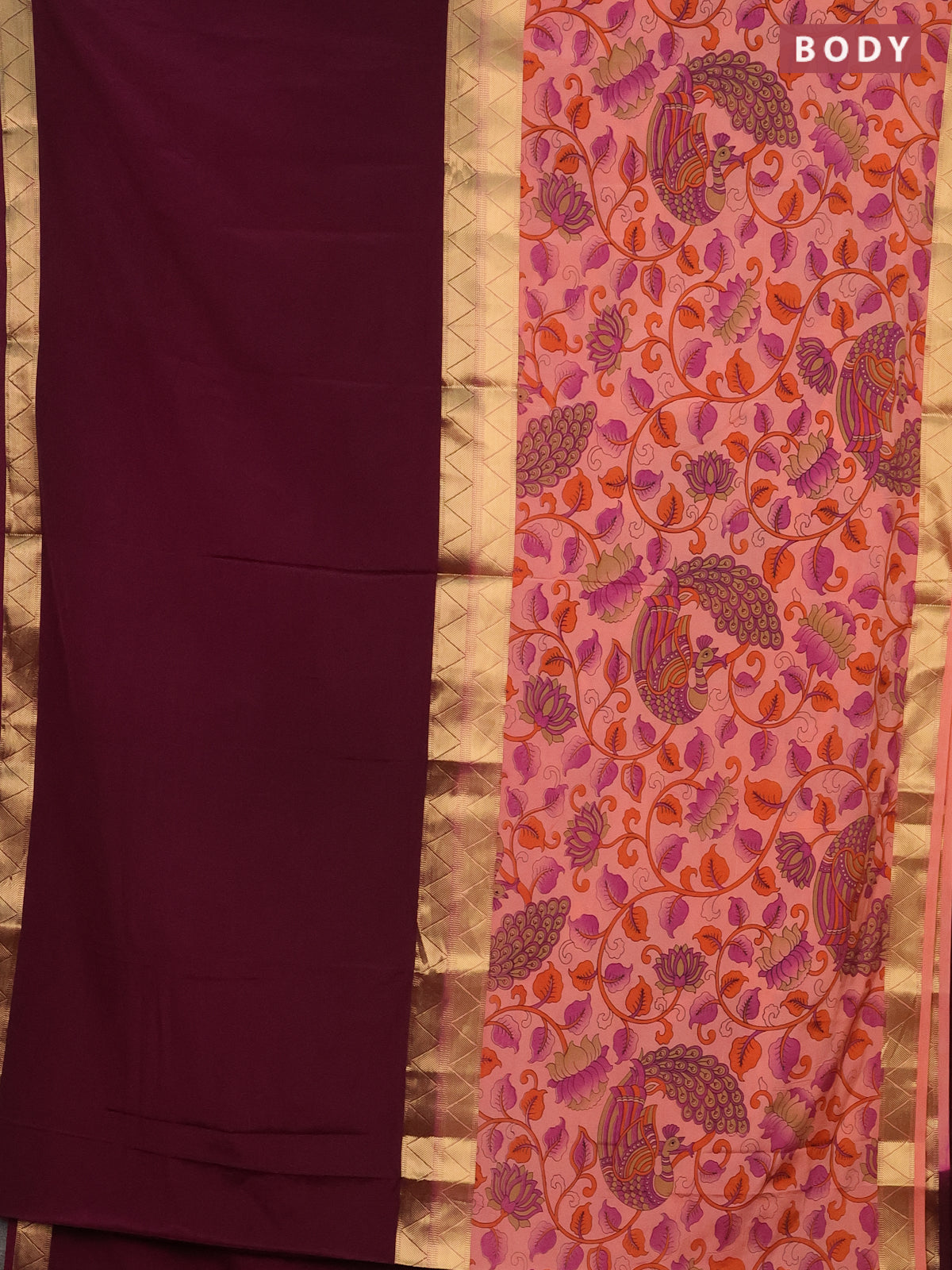 Semi mysore silk saree wine shade and peach orange with half & half style and long kalamkari printed border