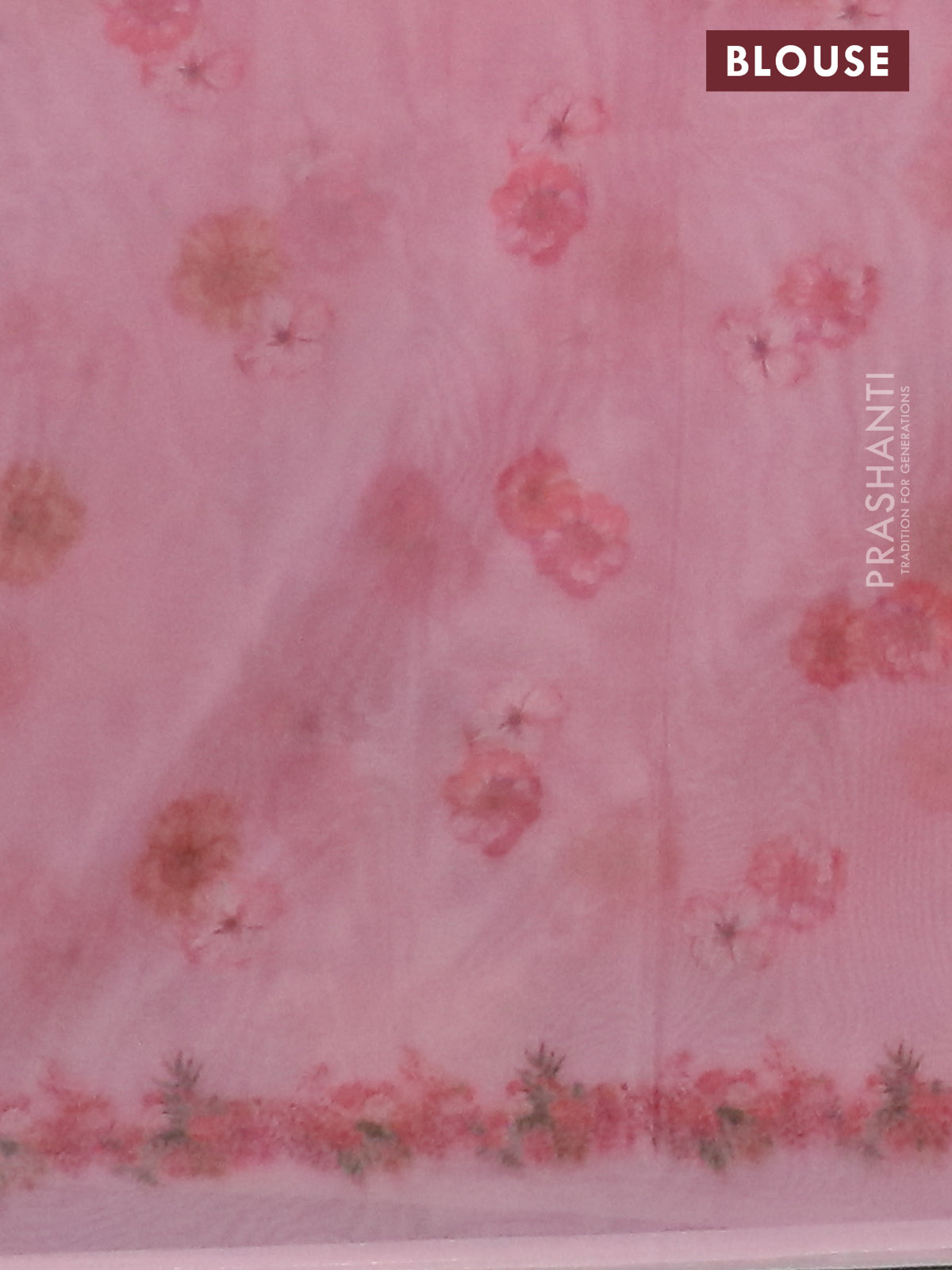 Semi organza saree peach pink with allover floral prints in borderless style