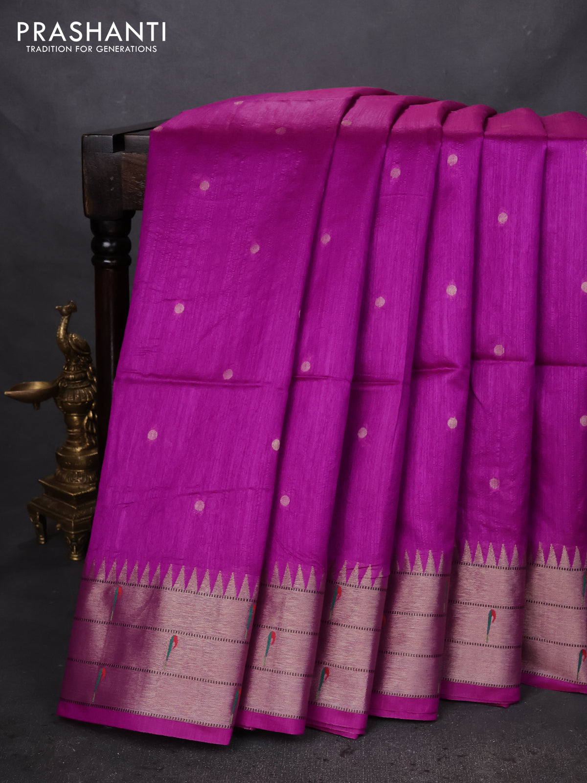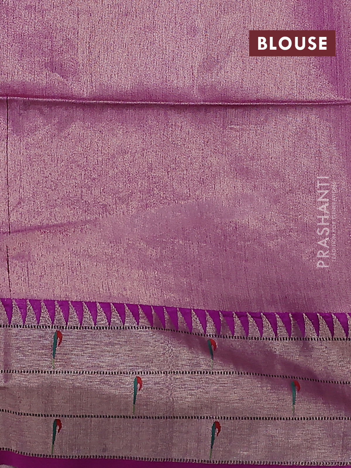 Semi paithani saree purple with zari woven buttas and peacock design paithani weaving pallu