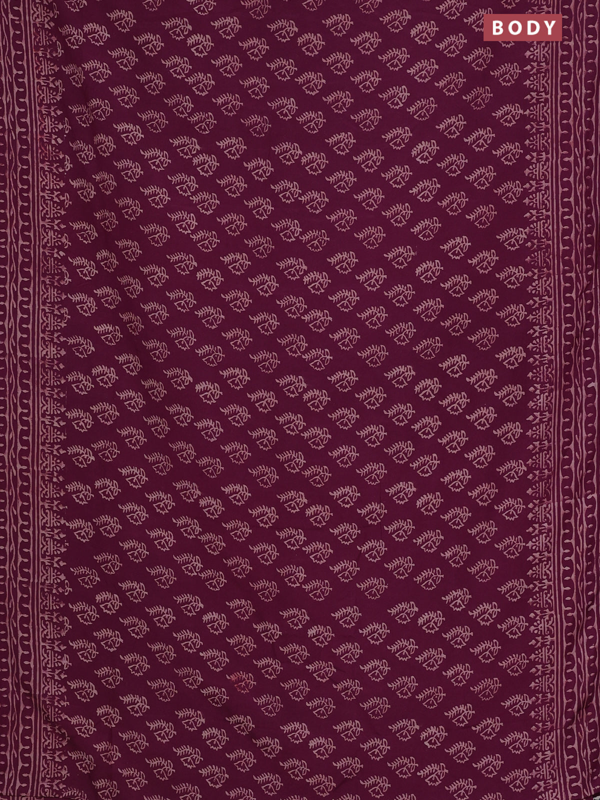 Semi pashmina silk saree wine shade and cream with allover butta prints and crocia lace work border