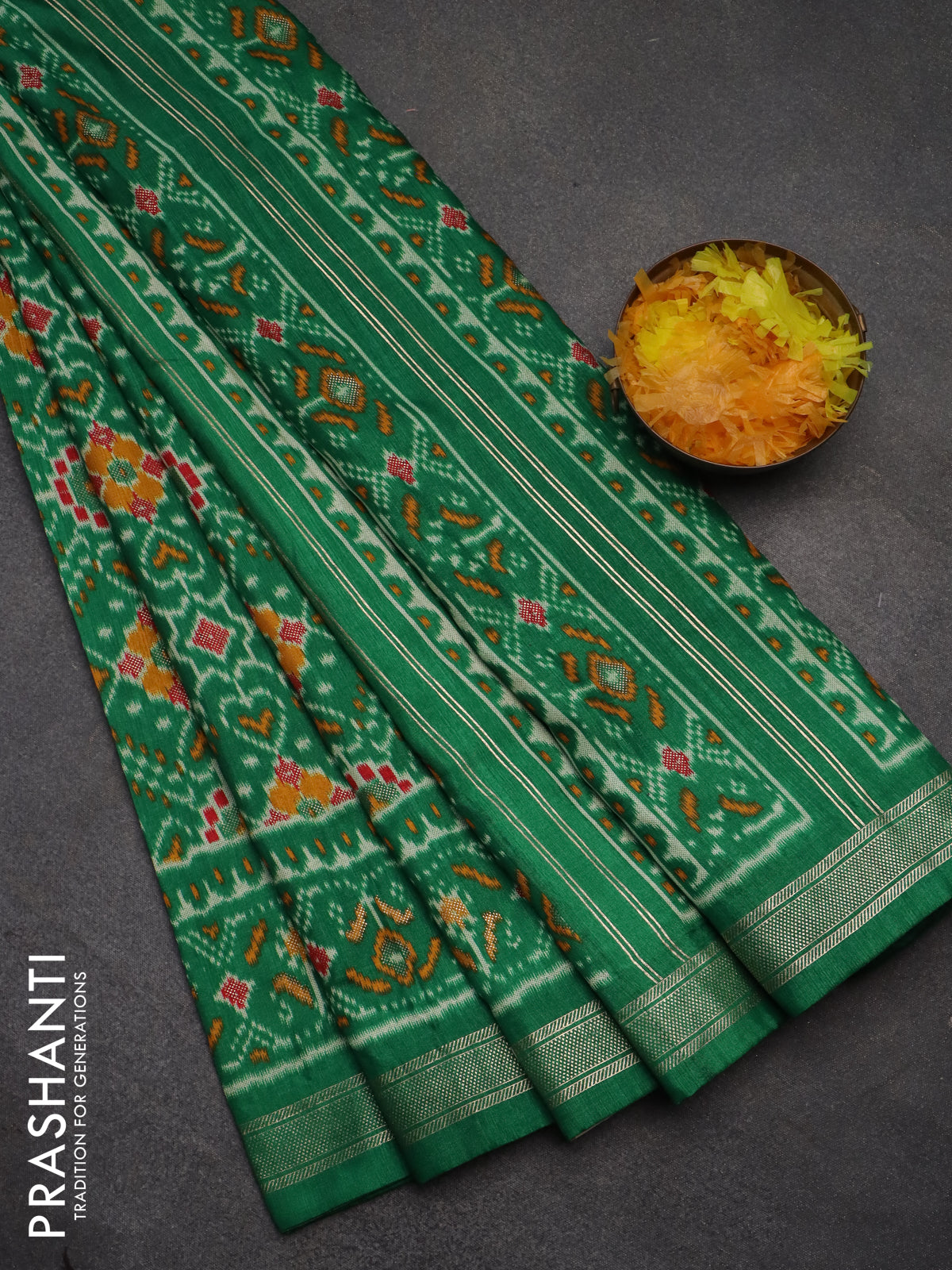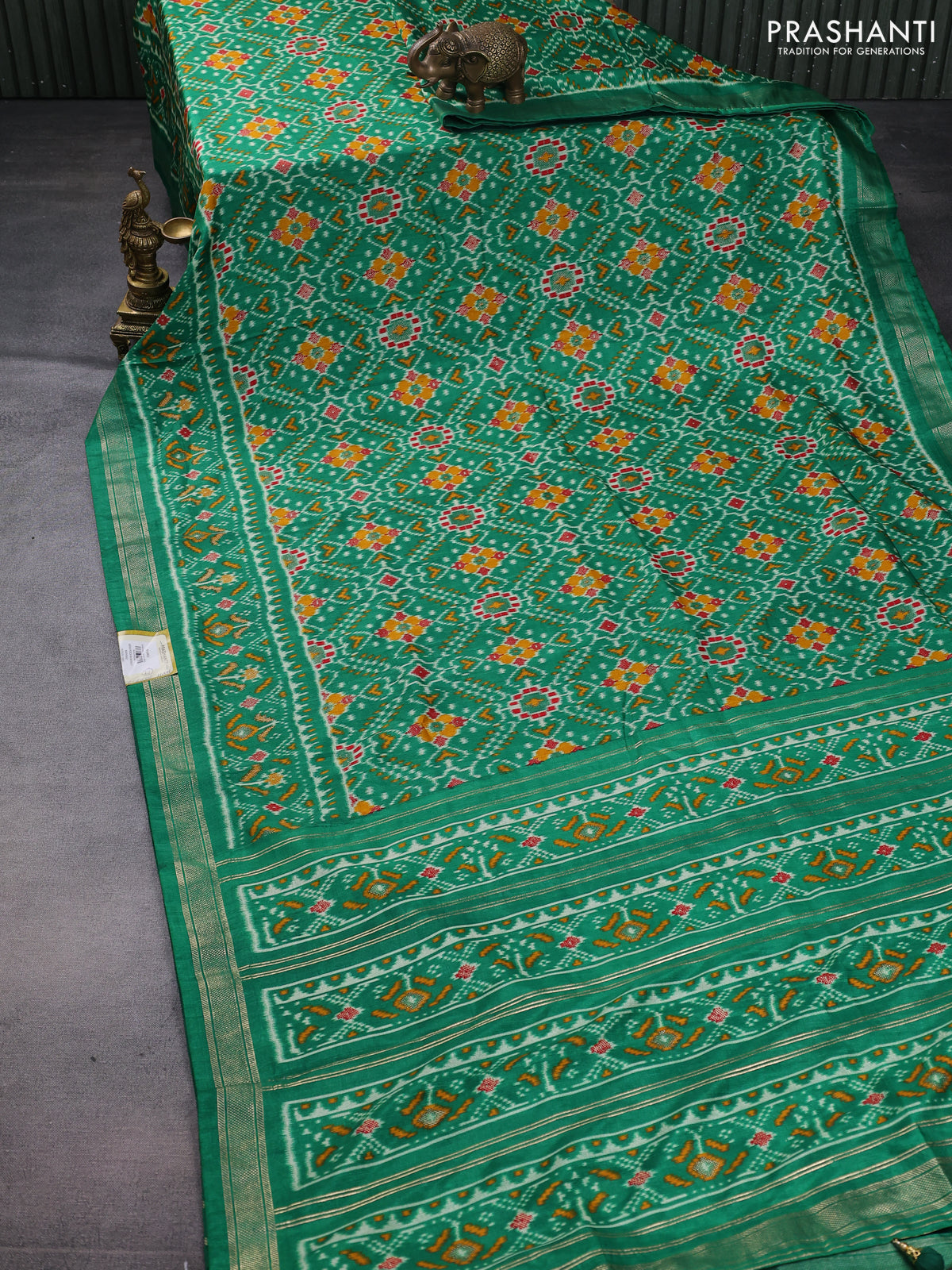 Semi pochampally saree green with allover ikat prints and zari woven border