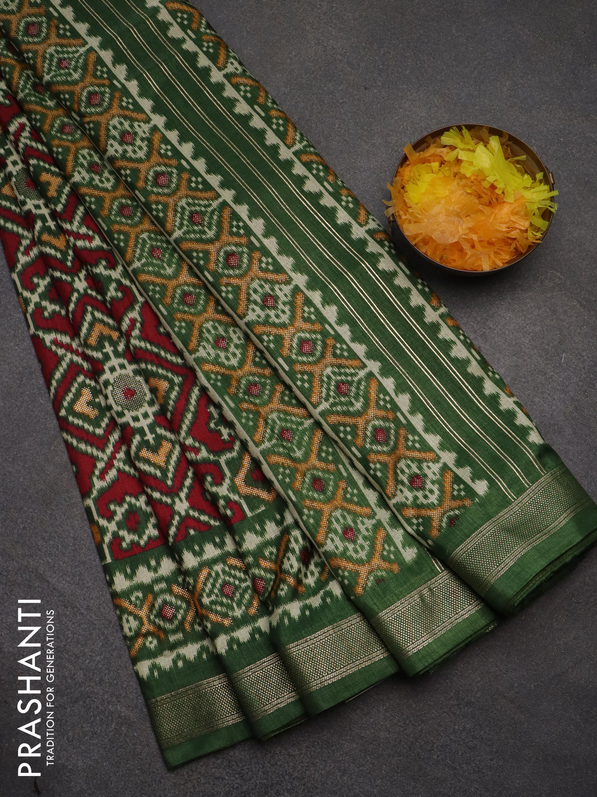 Semi pochampally saree green with allover ikat prints and zari woven border