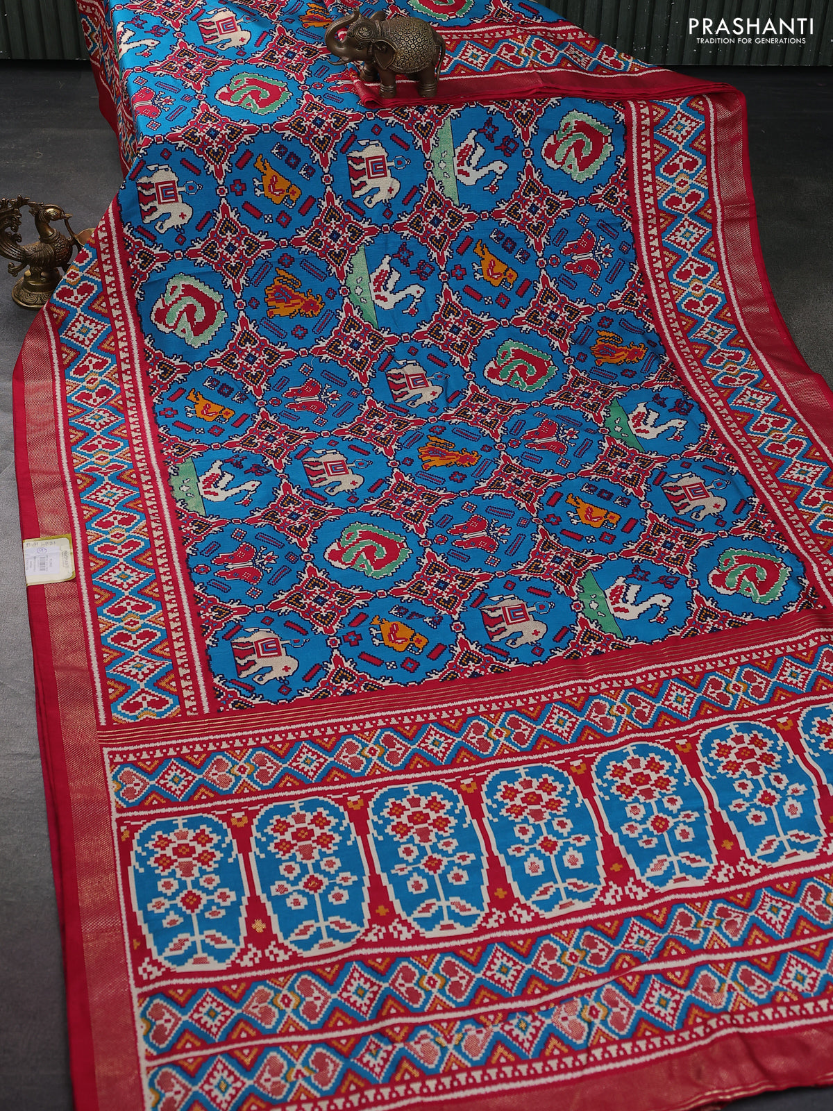 Semi pochampally silk saree teal blue and pink with patola prints and zari woven border