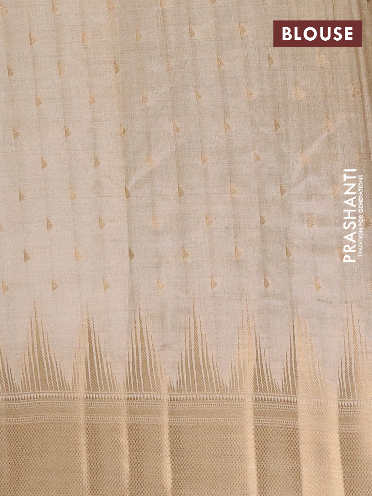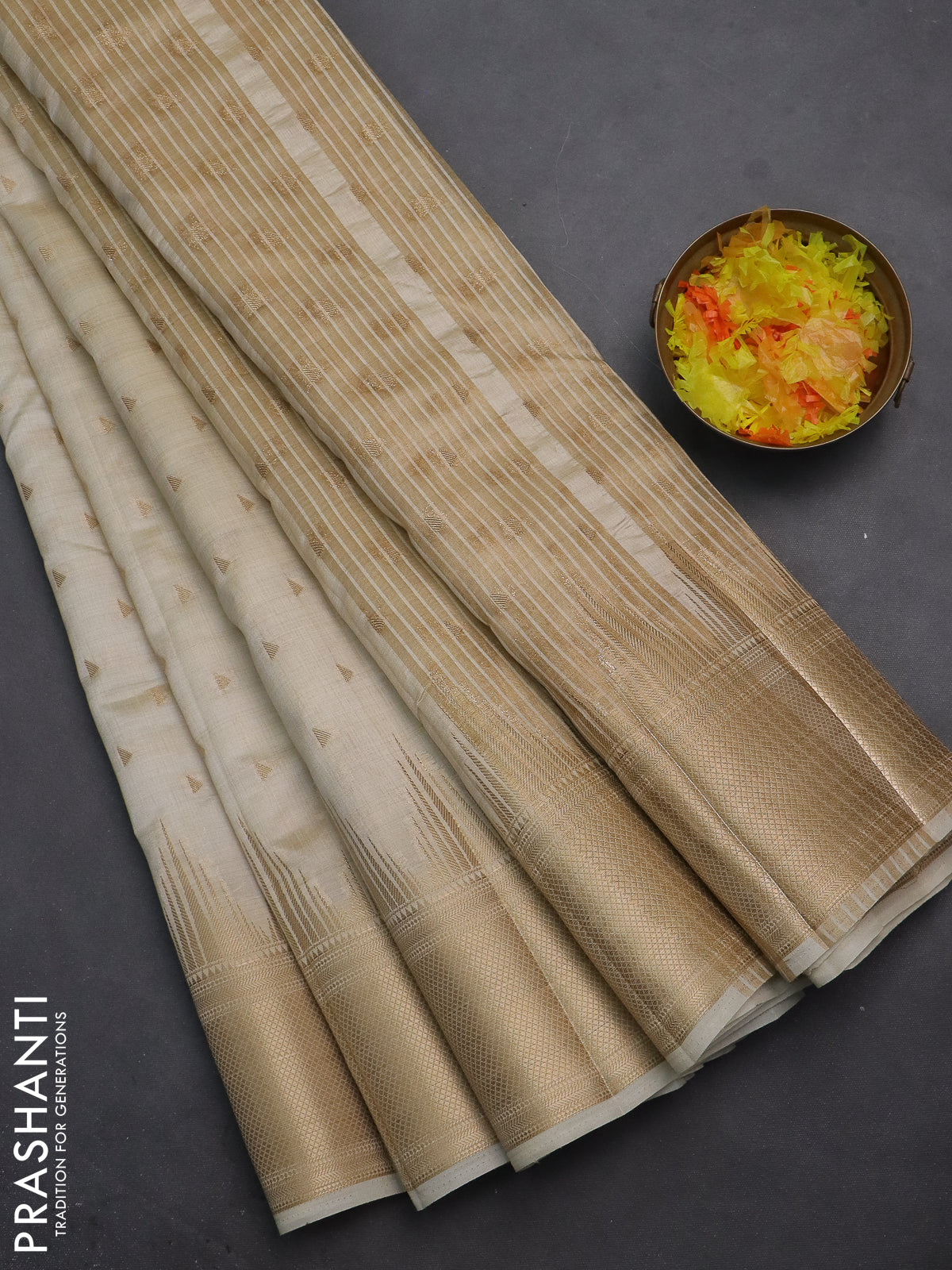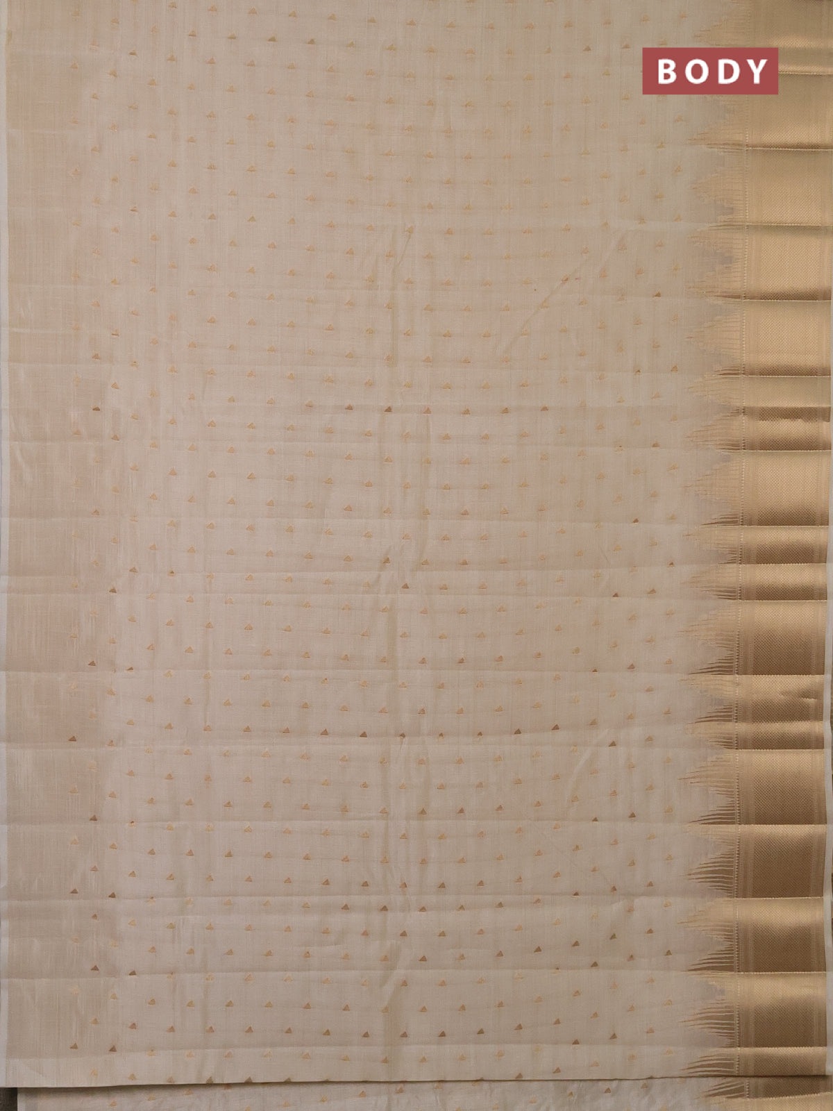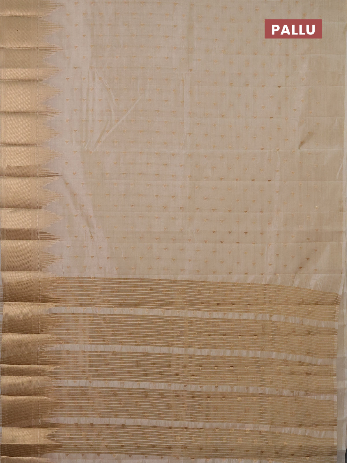 Semi raw silk saree cream with allover zari woven 1000 buttas and temple design zari woven border